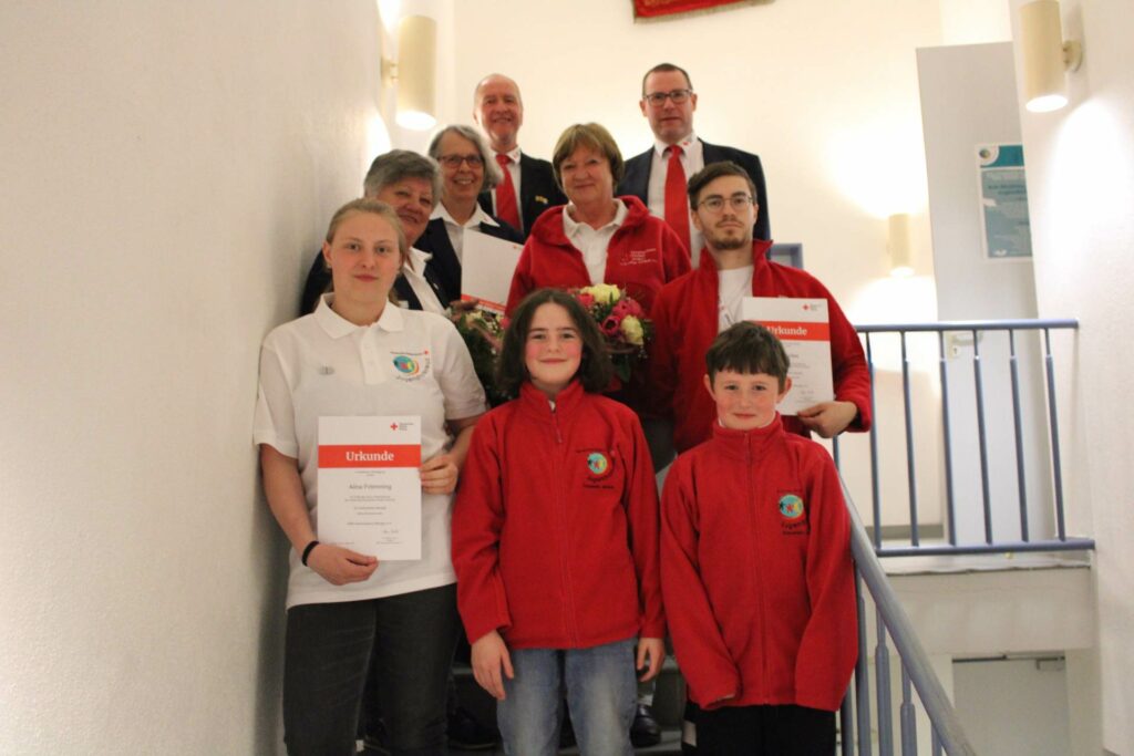 Der Höhepunkt der Jahreshauptversammlung waren die vorgenommenen Ehrungen. Zwei JRKler, Alina Frömming und Christian Riedle wurden für 5 Jahre Zugehörigkeit zur Rot Kreuz-Familie geehrt. Christian ist die 4. Generation seiner Familie, die im DRK tätig ist. Des Weiteren erhielt Nils Vitas für 10 Jahre und Katharina Menig für 15 Jahre eine Urkunde. Bei der Ehrung langjähriger Mitglieder wurden Gabi Pfalzer für Ihre Mitgliedschaft und Werner Springer für 35 Jahre tatkräftiges Engagement ausgezeichnet.