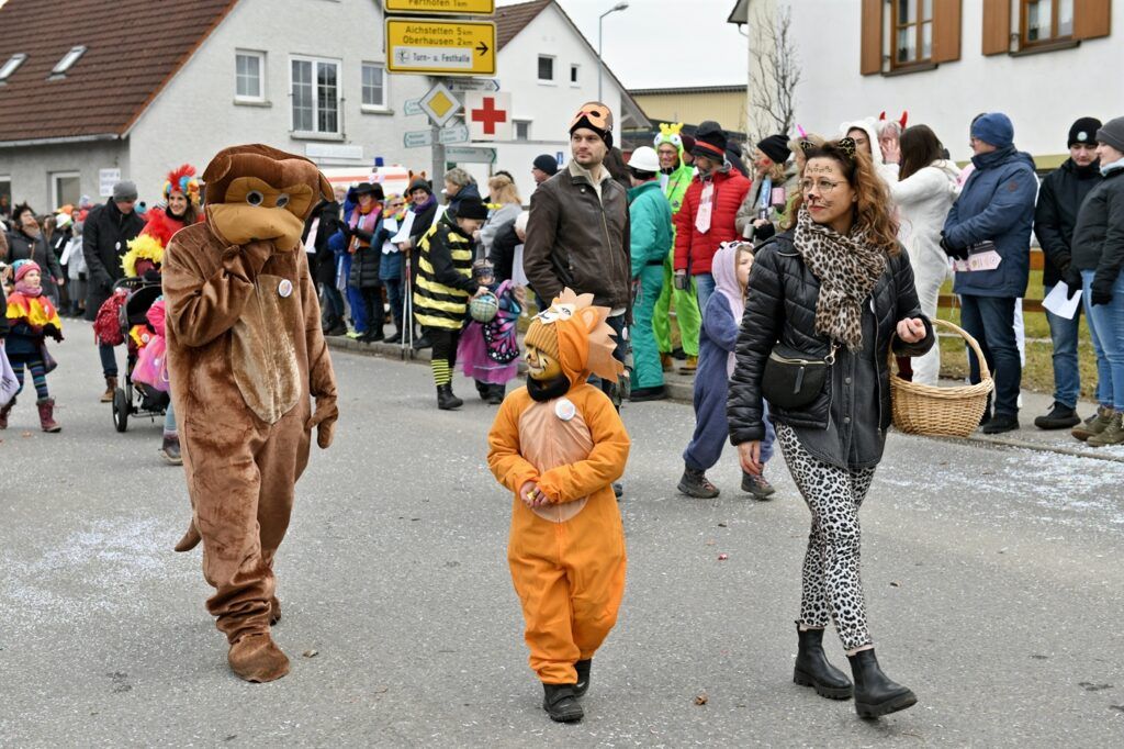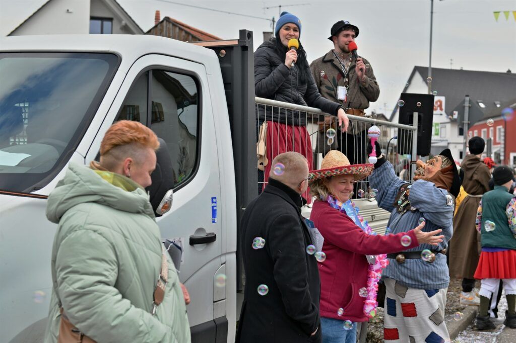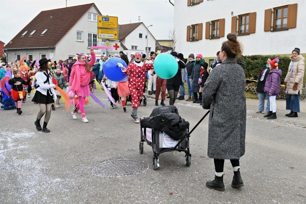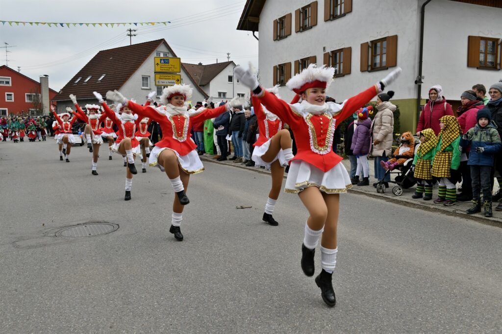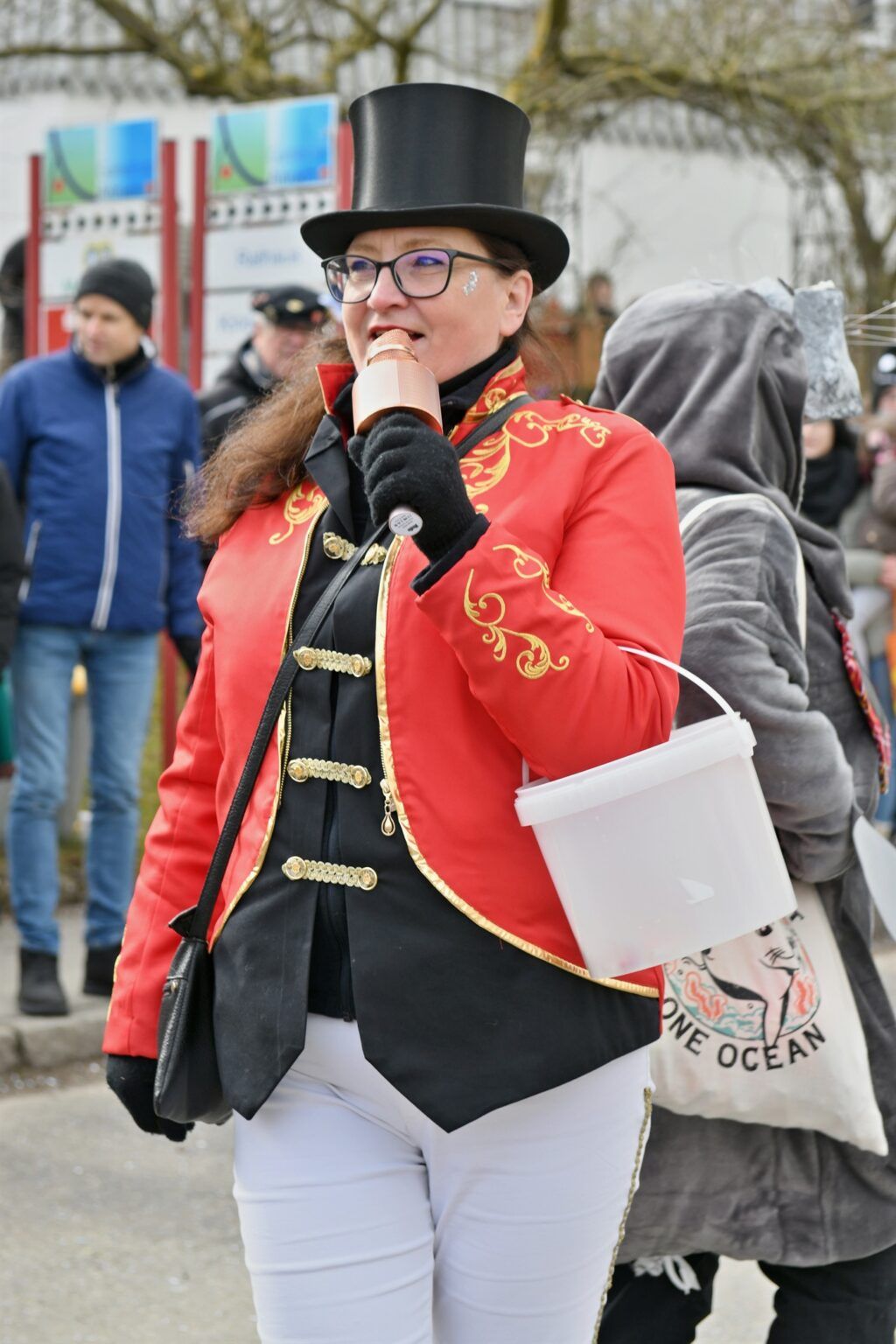 Höhepunkte und absolute Hingucker beim Aitracher Gaudiwurm waren die heimischen Fußgruppen und Wagenbauer, welche die Zirkuswelt, aber auch aktuelle politische Themen der Gegenwart in Stadt und Land bunt und fantasievoll präsentieren. Die Musikkapelle der Teilgemeinde Treherz führte den Zug an, gefolgt von den Aitracher Narrenzunftgruppen Roi- und Kellaweible, den Prinzenpaaren Florentine und Andreas und Laura und Jakob sowie den Gardemädchen.