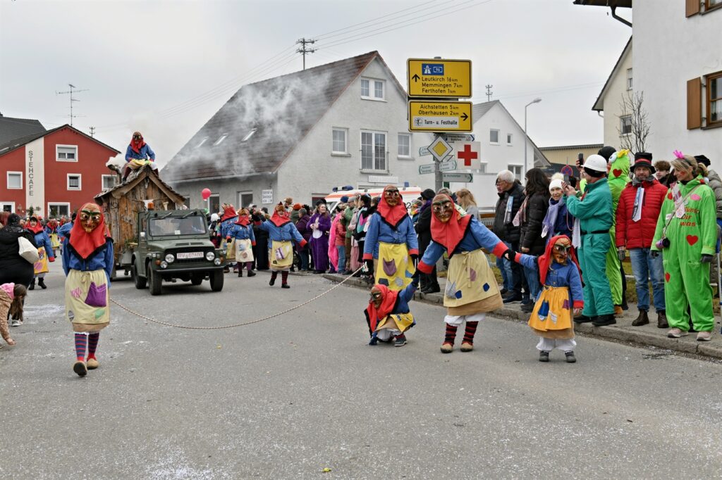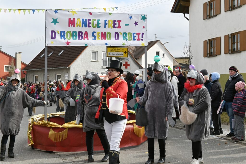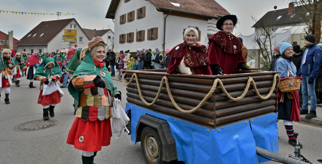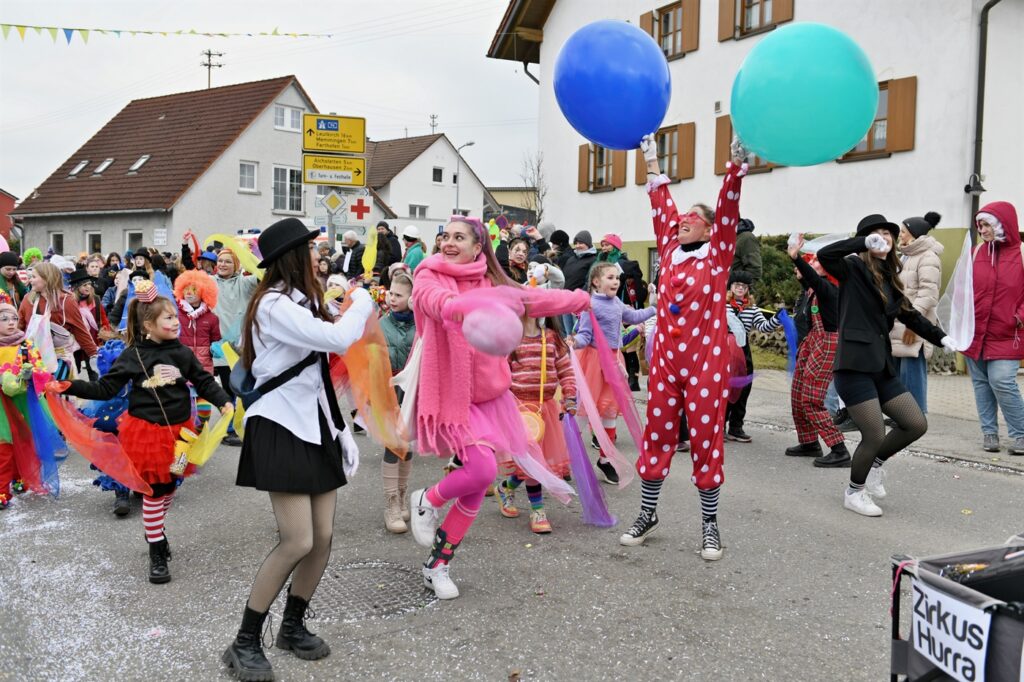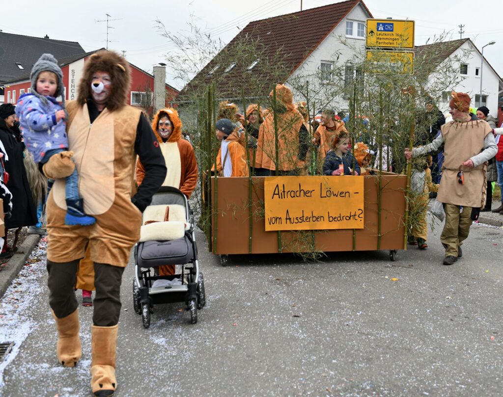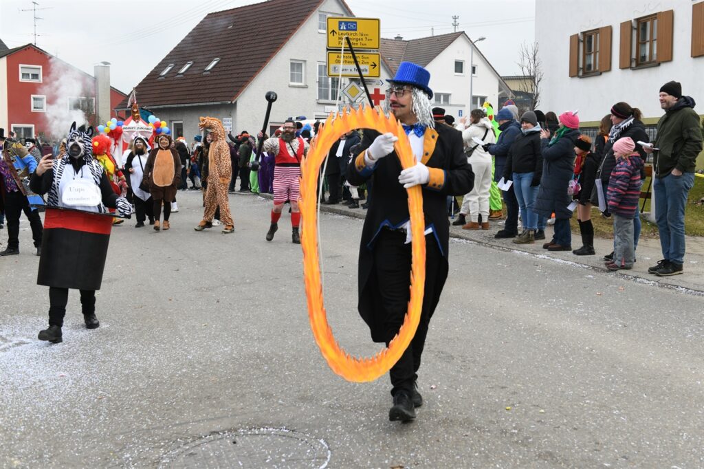 Getreu dem diesjährigen Motto der Aitracher Fasnet „Narrenwelt im Zirkuszelt““ präsentierten sich am vergangenen Samstag (1.3.) viele Fußgruppen der heimischen Narrenzunft beim traditionellen Narrensprung in der Illertalgemeinde: in Kostümen. Mehr als 4000 Mitwirkende in 70 Gruppen sorgten für Hochstimmung beim dreistündigen Umzug.
