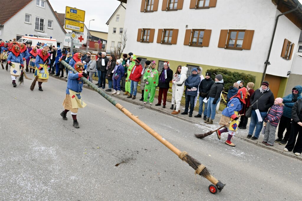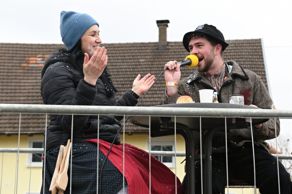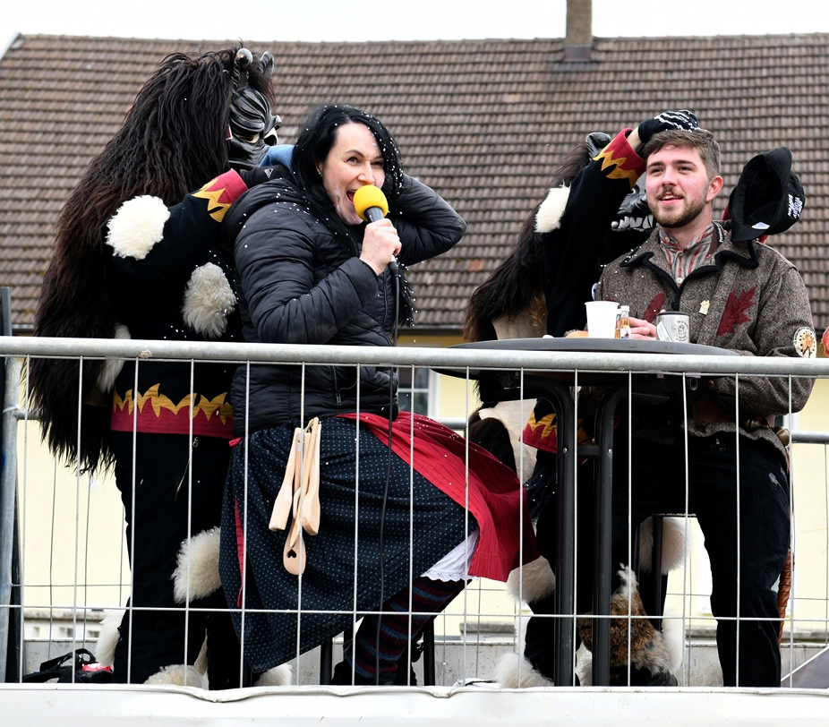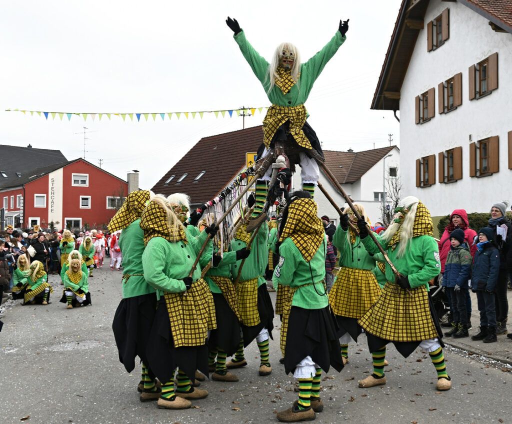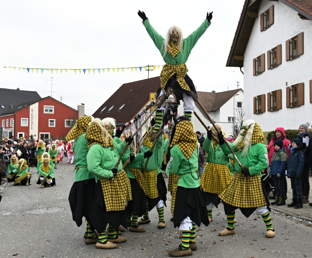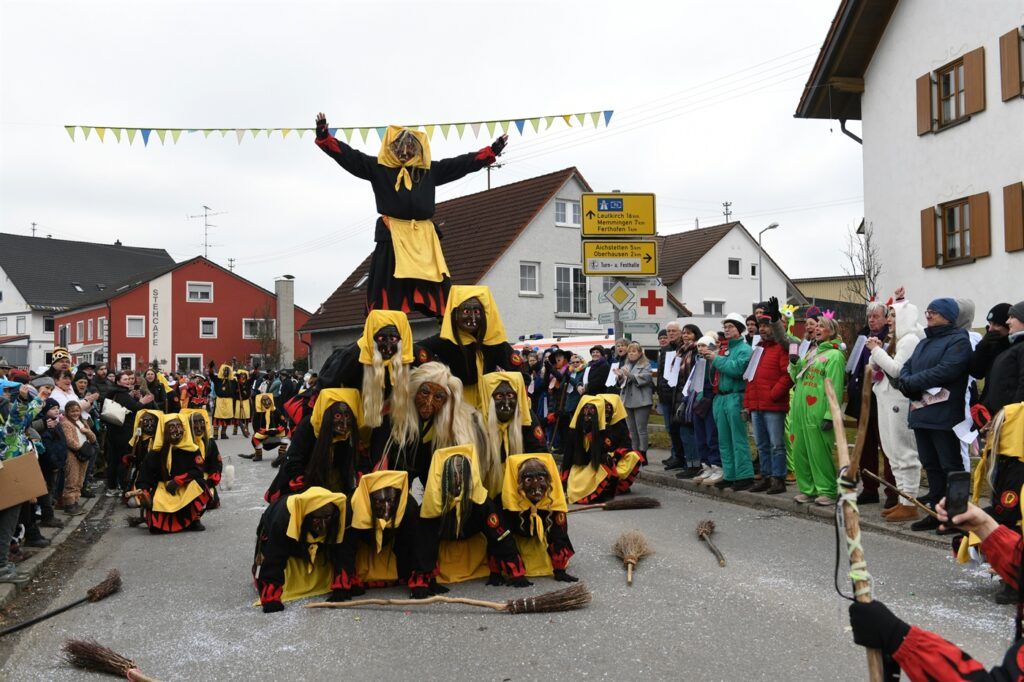 Hexenpyramiden und sonstige spektakuläre Vorführung wurden mit viel Applaus bedacht. An den jeweiligen Kommentatoren-Plätzen sorgten für zusätzliche Stimmung: am „Gasthaus Rössle“ Martin Speckle; beim Maler Merk Susa Lautenbacher mit dem Tannheimer Zunftmeister Markus Arnold; bei der Ehrentribüne am alten Rathaus Michael Weinmann, besser bekannt als der „Moser“.