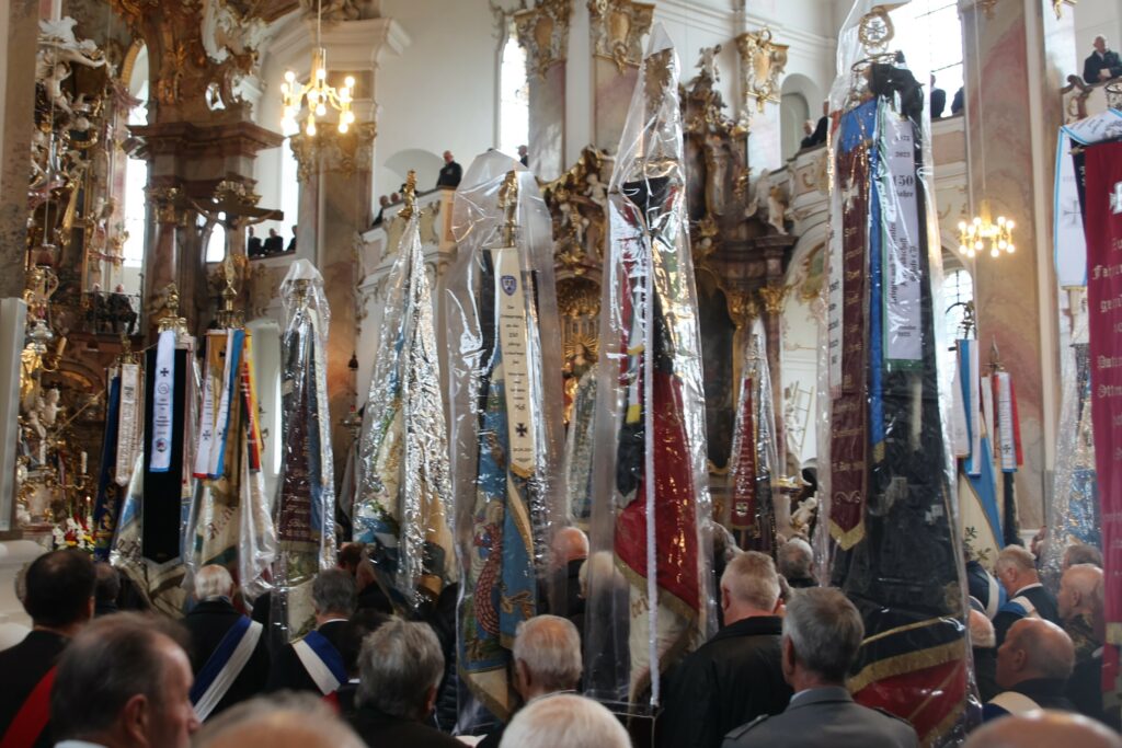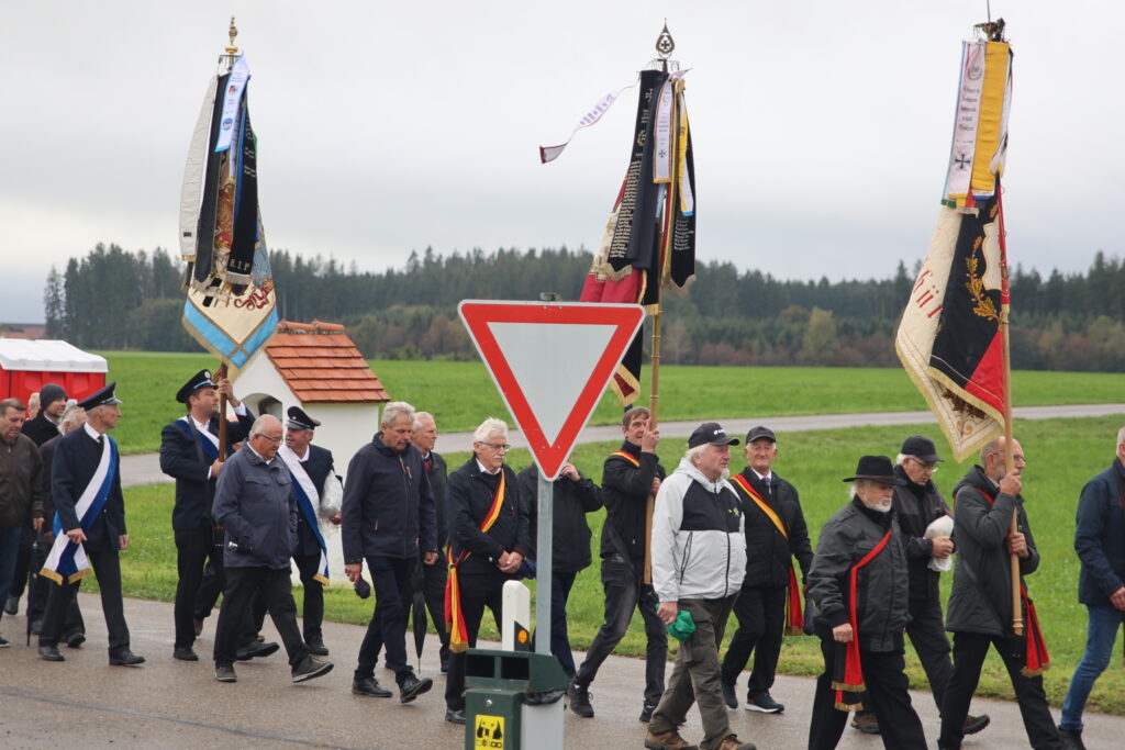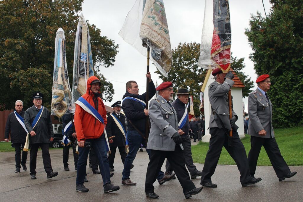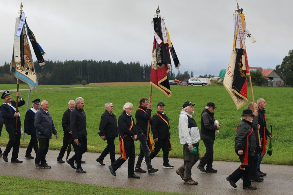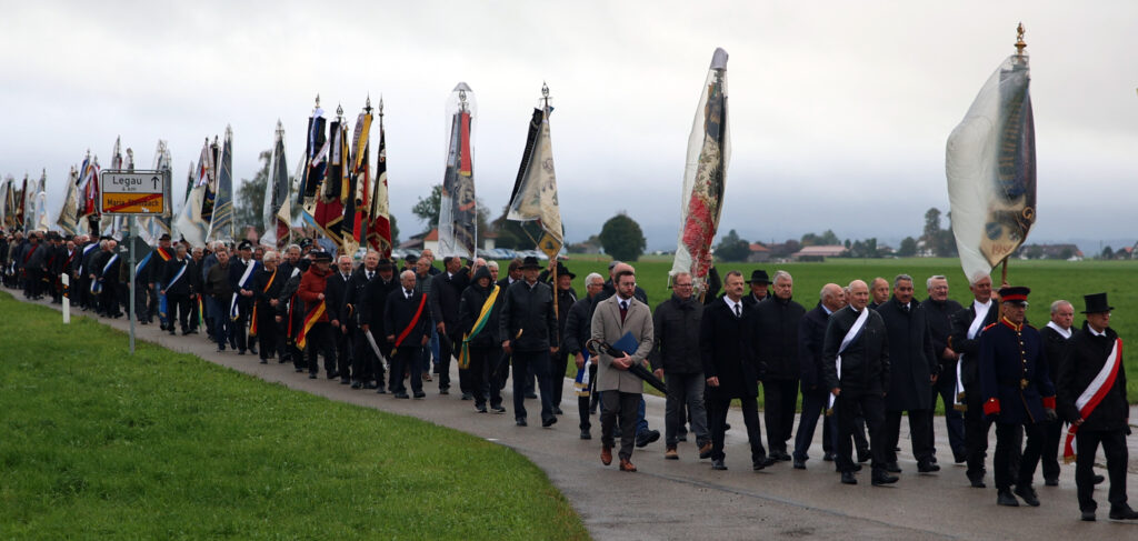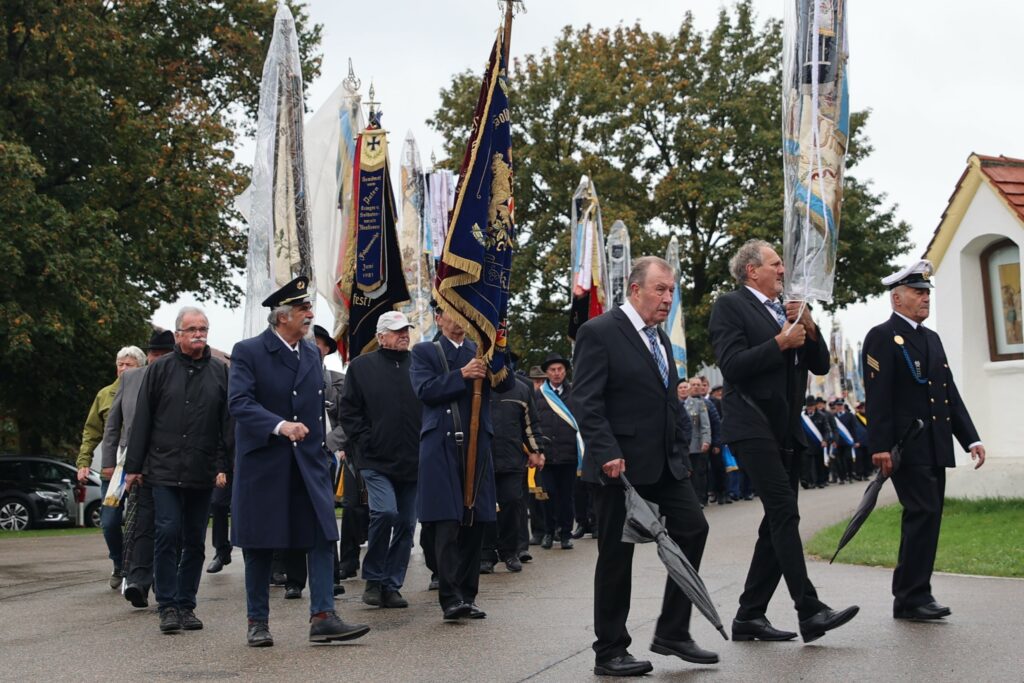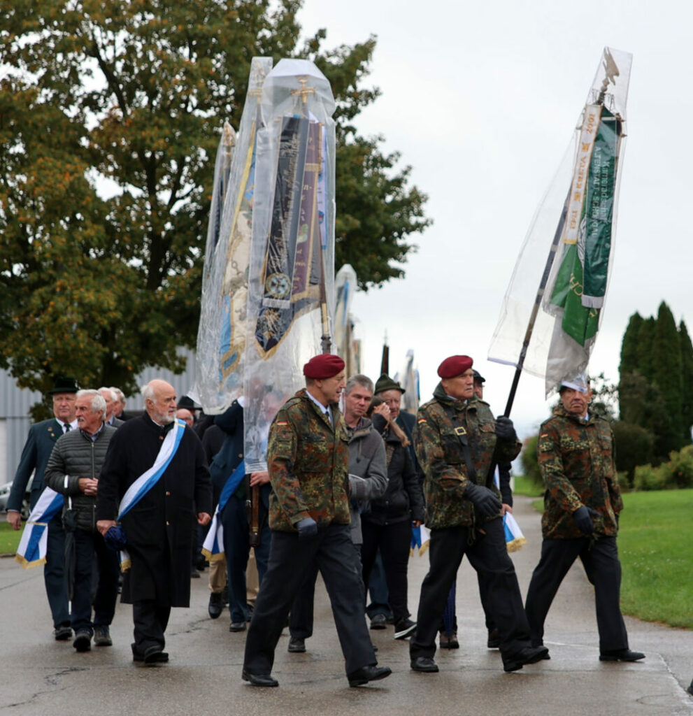 Maria Steinbach – Am vergangenen Samstag (28.9.) fand in Maria Steinbach die 175. Michaeli-Wallfahrt statt, die von der Bayerisch-Württembergischen Kriegervereinigung organisiert wurde. Die Wallfahrt, die sich traditionell der Ehre der Gefallenen widmet, stand dieses Jahr unter dem besonderen Zeichen des Gedenkens und der Versöhnung. 93 Fahnenabordnungen von Veteranen- und Soldatenvereinen aus dem bayerischen und württembergischen Allgäu, darunter Vertreter aus Dietmanns, Hauerz, Diepoldshofen, Arnach und Aitrach, verneigten sich ehrerbietig vor dem Altar in der Wallfahrtskirche Mariä Schmerzen.