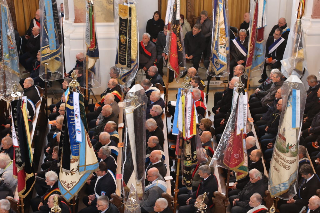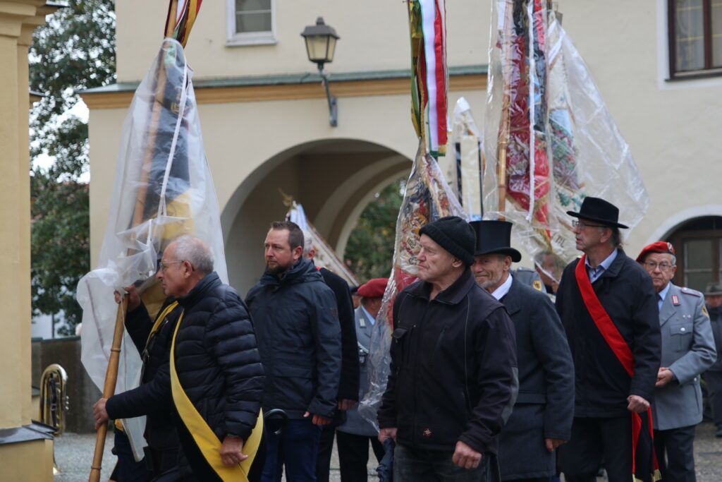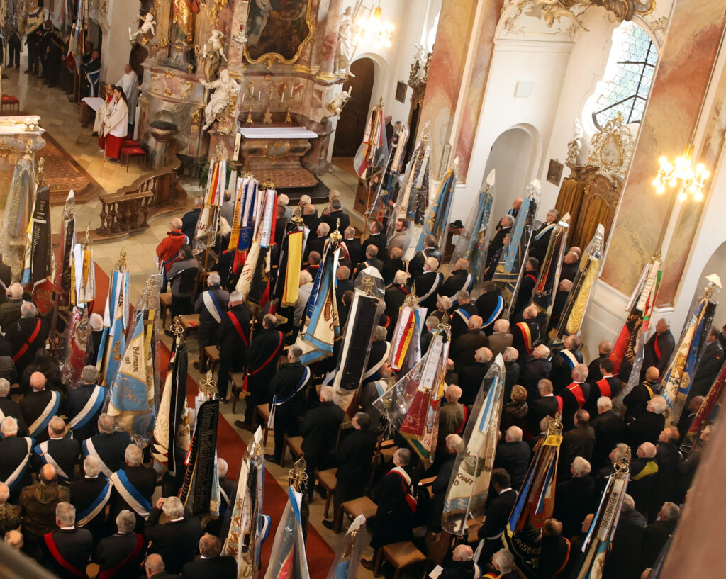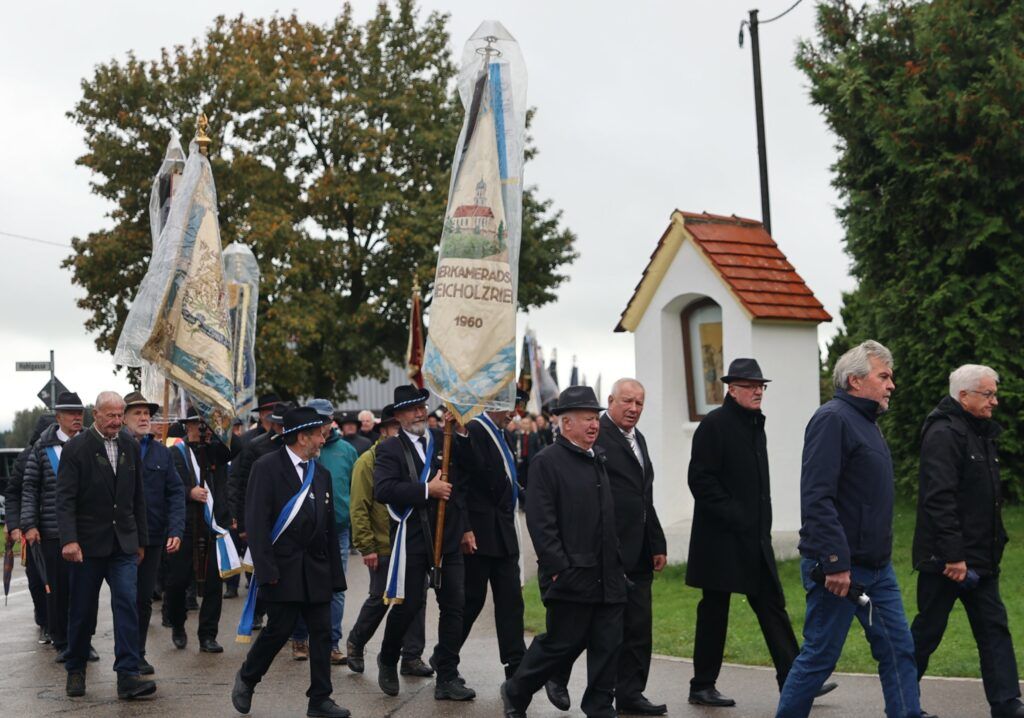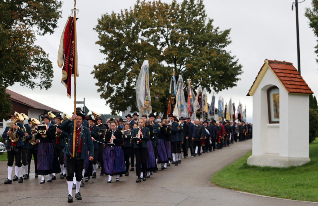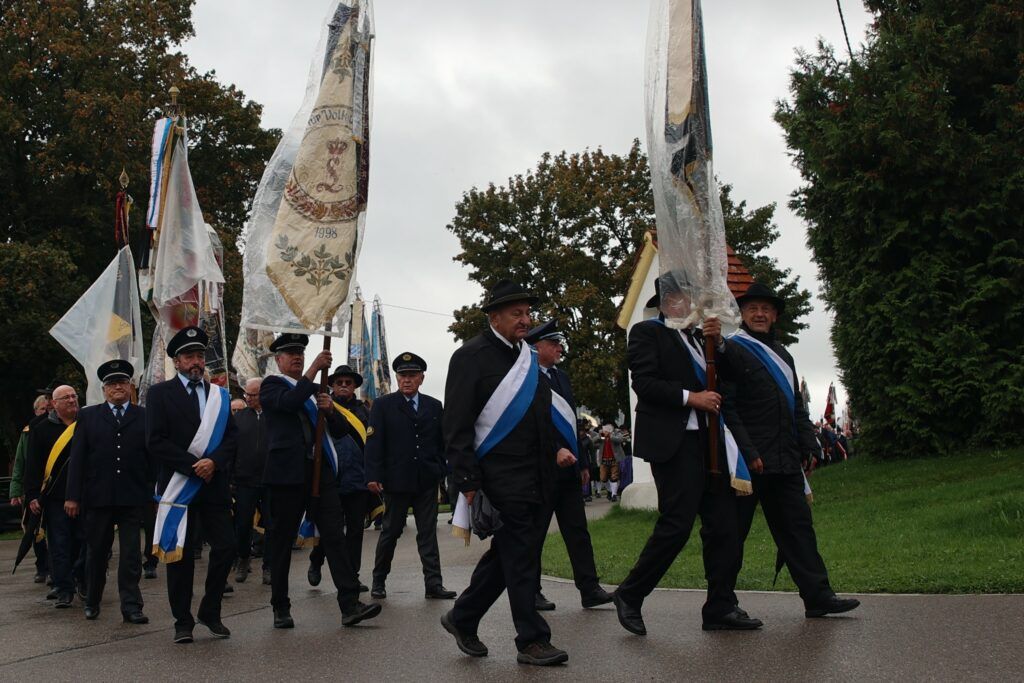 Maria Steinbach – Am vergangenen Samstag (28.9.) fand in Maria Steinbach die 175. Michaeli-Wallfahrt statt, die von der Bayerisch-Württembergischen Kriegervereinigung organisiert wurde. Die Wallfahrt, die sich traditionell der Ehre der Gefallenen widmet, stand dieses Jahr unter dem besonderen Zeichen des Gedenkens und der Versöhnung. 93 Fahnenabordnungen von Veteranen- und Soldatenvereinen aus dem bayerischen und württembergischen Allgäu, darunter Vertreter aus Dietmanns, Hauerz, Diepoldshofen, Arnach und Aitrach, verneigten sich ehrerbietig vor dem Altar in der Wallfahrtskirche Mariä Schmerzen.