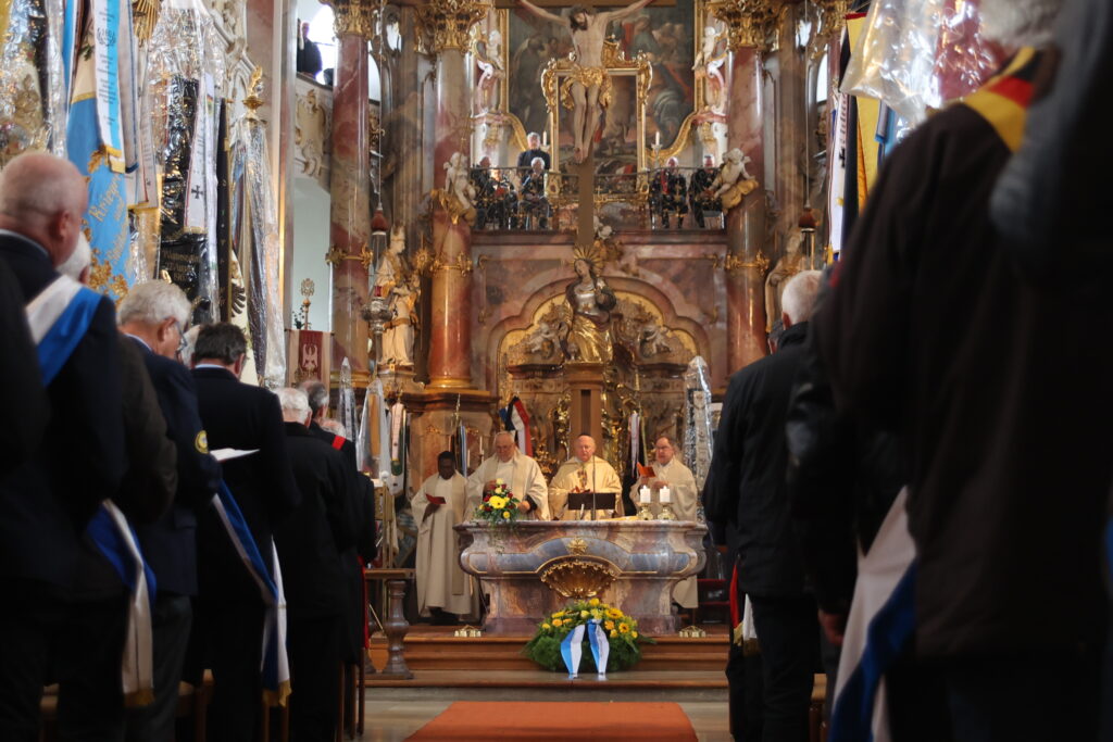 Der Tag begann mit einem feierlichen Gottesdienst, bei dem die Deutsche Messe von Franz Schubert gesungen wurde. Die Eröffnung erfolgte mit dem traditionellen Lied „Wohin soll ich mich wenden, wenn Schmerz und Gram mich drücken?“, das die emotionale Atmosphäre der Wallfahrt eindrucksvoll untermalte. In der Lesung aus der Offenbarung des Johannes wurde die Botschaft der Hoffnung und des Trostes verkündet. In seiner Predigt sprach Abt Johannes Schaber aus Ottobeuren eindringlich über die Notwendigkeit, „im Streit die Verletzungen und den Schmerz der anderen anzuerkennen“. Diese Botschaft der Versöhnung zog sich wie ein roter Faden durch die gesamte Feierlichkeit.