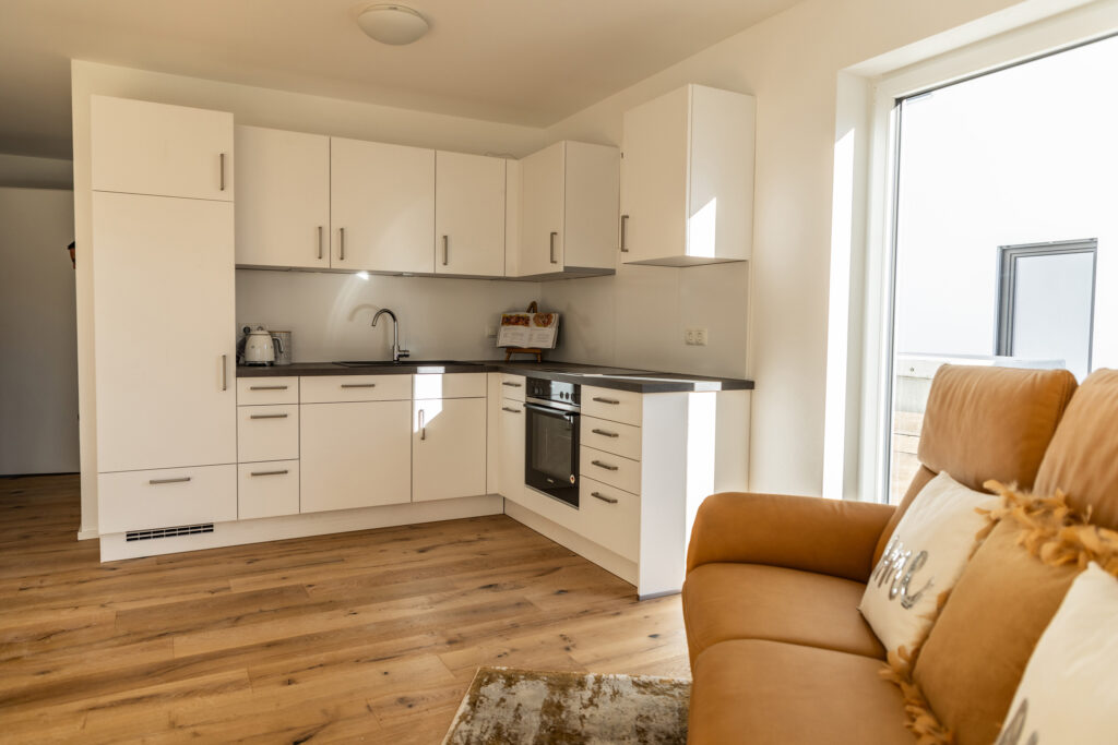 Die Zwei- und Dreizimmer-Wohnungen sind schlüsselfertig gebaut, inklusive Küche. Foto: Max Wild