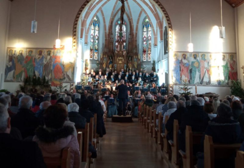 Seibranz – Als die Abendsonne das vollbesetzte Kirchenschiff von St. Ulrich in Seibranz in warmes Licht tauchte, war die Bühne für ein ganz besonderes Neujahrskonzert bereitet. Mit voll besetzten Sitzreihen und vielen stehenden Zuhörern war das Konzert jeden Moment wert. Der Männerchor Seibranz und der Musikverein Seibranz begeisterten das Publikum mit ihren farbenfrohen und mitreißenden Darbietungen.