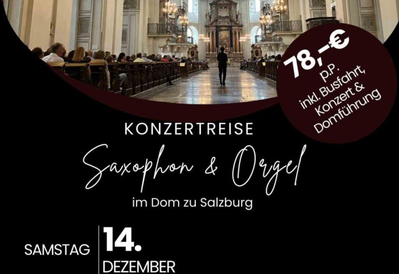 Leutkirch – Christian Segmehl, Saxophonist und Konzertorganisator aus Leutkirch, bietet in Zusammenarbeit mit Bus-Ehrmann eine Konzertreise nach Salzburg an. Am 14. Dezember geht es in die Stadt Mozarts. Nachstehend Informationen zur Busreise sowie zu weiteren Angeboten des vielseitigen Kultur-Machers. So konzertiert er zusammen mit dem Organisten Christian Schmid am 3. Januar in der Kirche in Hofs (19.00 Uhr) und am 5. Januar um 15.00 Uhr in der Kirche in Wuchzenhofen. Auch ein Rückblick auf d…