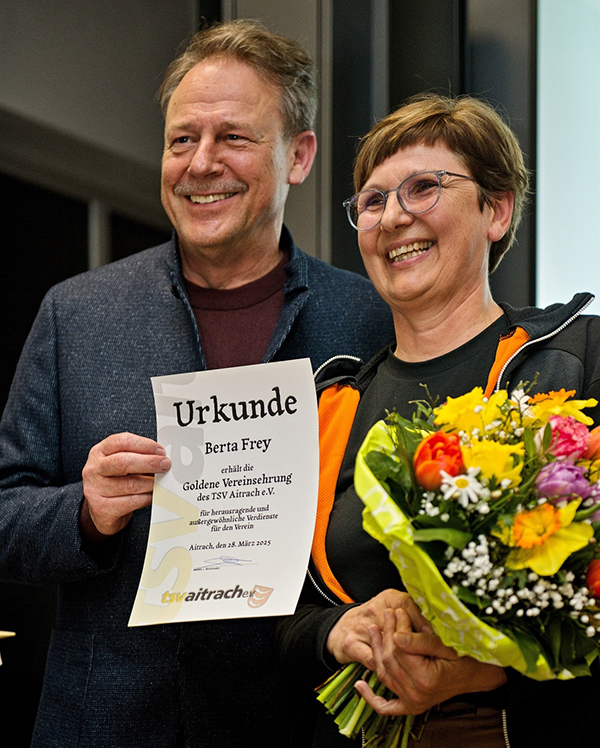 Bei der Jahreshauptversammlung des TSV Aitrach wurden zudem Franz Weishaupt und Berta Frey besonders geehrt. Darüber und über weitere Tagesordnungspunkte der Jahreshauptversammlung berichten wir gesondert.