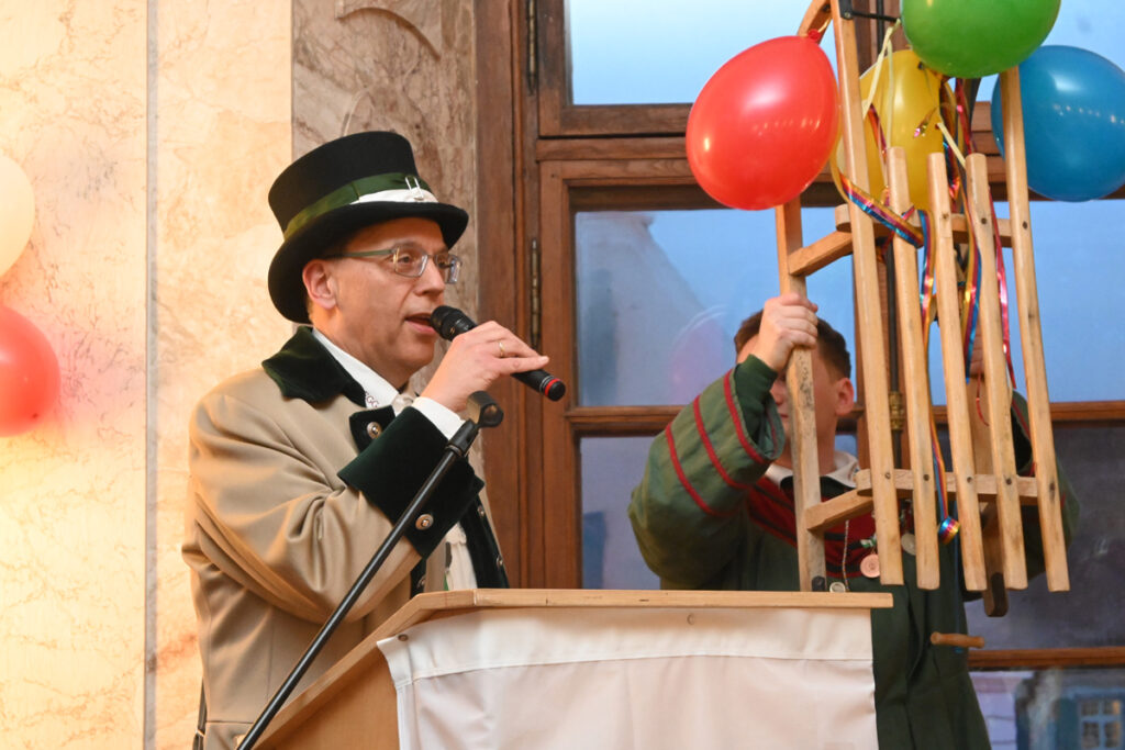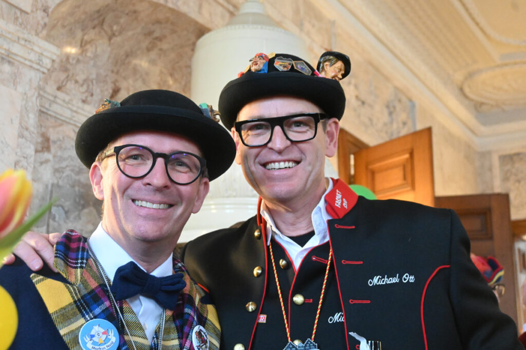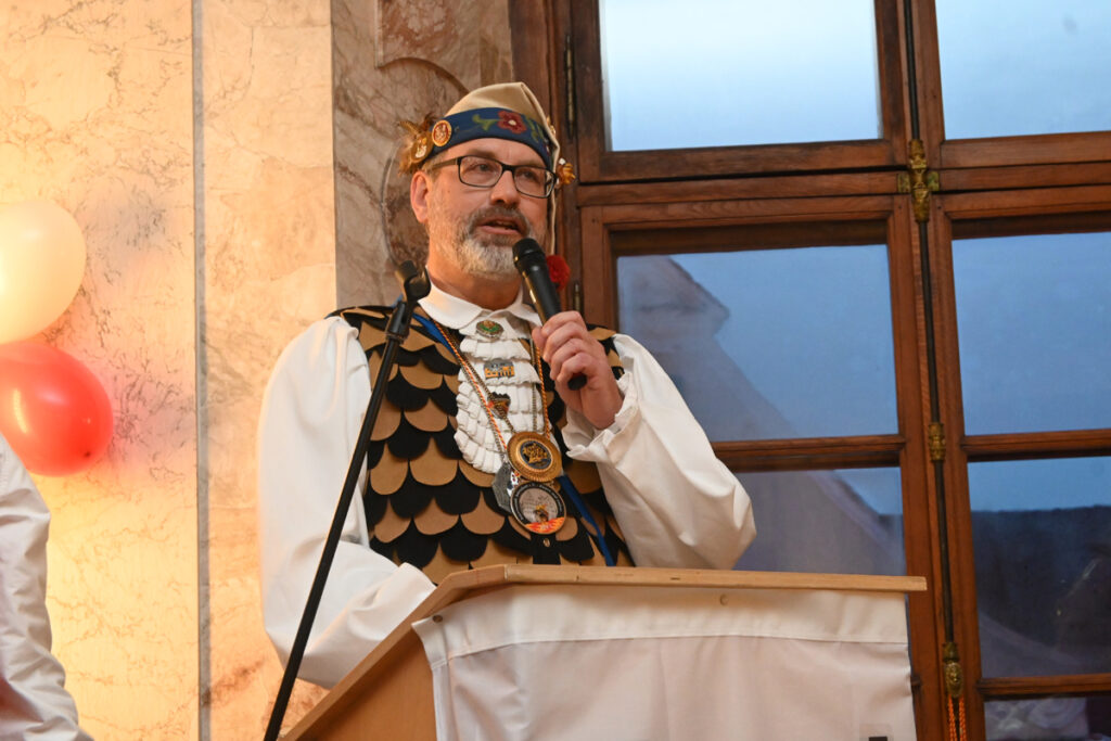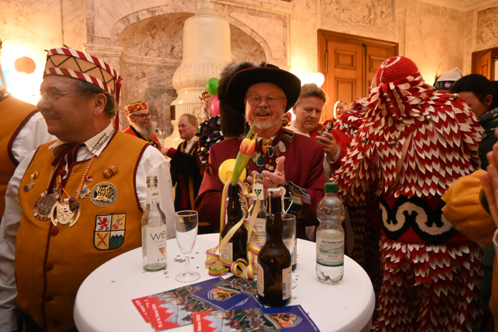 Zunft- und Bürgermeister, Ehren- und sonstige Räte, Brauer neben Bauer und ein leibhaftiger Erbgraf sowie ein MdB tummelten sich in schönster Narrenverkleidung zwischen den ehrwürdigen Marmorwänden.