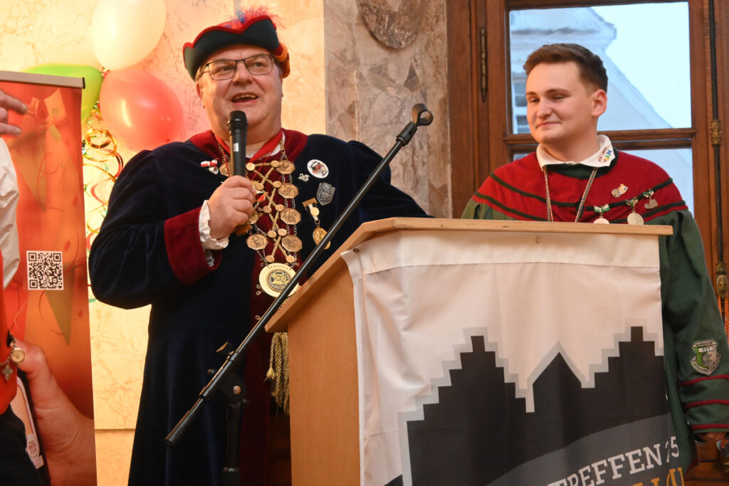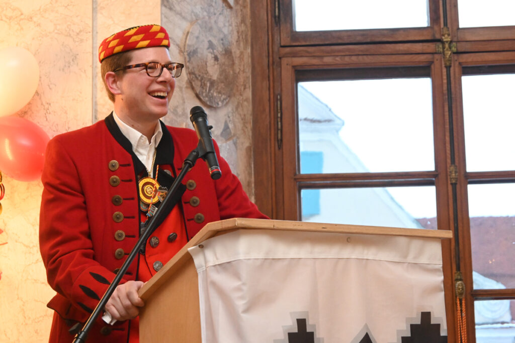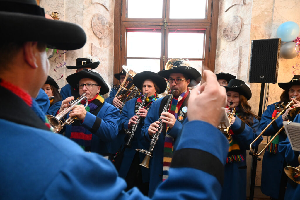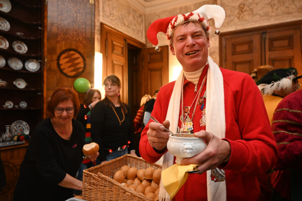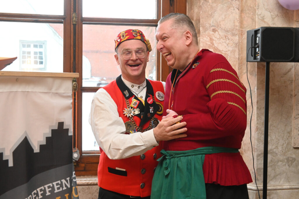 Zunft- und Bürgermeister, Ehren- und sonstige Räte, Brauer neben Bauer und ein leibhaftiger Erbgraf sowie ein MdB tummelten sich in schönster Narrenverkleidung zwischen den ehrwürdigen Marmorwänden.