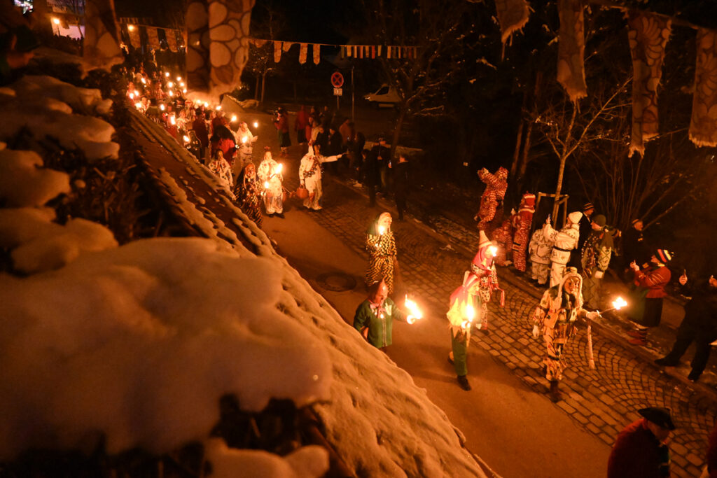 Nach gut eineinhalb Stunden neigte sich der Ehrengastempfang seinem Ende zu. Der Burggraf eröffnete das Fest und die Ehrengäste zogen im Fackelschein zu den Brauchtumsvorführungen am Hexeneck.
