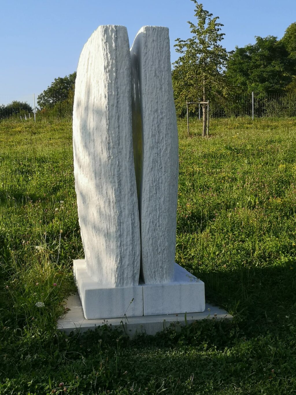 Lang und Fritz erläuterten zunächst die Vorgehensweise. Den Kern der Schau bildet eine kleine Gruppe von gewissermaßen gesetzten Künstlern, die gezielt eingeladen wurden. Das sind unter anderem für die Skulptur im deutschen Südwesten so wichtige Bildhauer wie Reinhard Scherer, Klaus Prior oder Jörg Bach. Außerdem gab es eine Ausschreibung, aus der eine Fachjury schließlich die Kunstwerke auswählte, die zusätzlich aufgestellt werden bzw. erst noch vor Ort geschaffen werden sollten. Unter den Ausgewählten finden sich renommierte oberschwäbische Bildhauer wie Friedemann Grieshaber oder Alexander Habisreutinger, aber auch einige Kunstschaffende mit ganz direktem Bezug zu Wangen: Margit Hartnagel und Irene Wanner-Mitter leben in Wangen, Albrecht Zauner ging hier zur Schule.