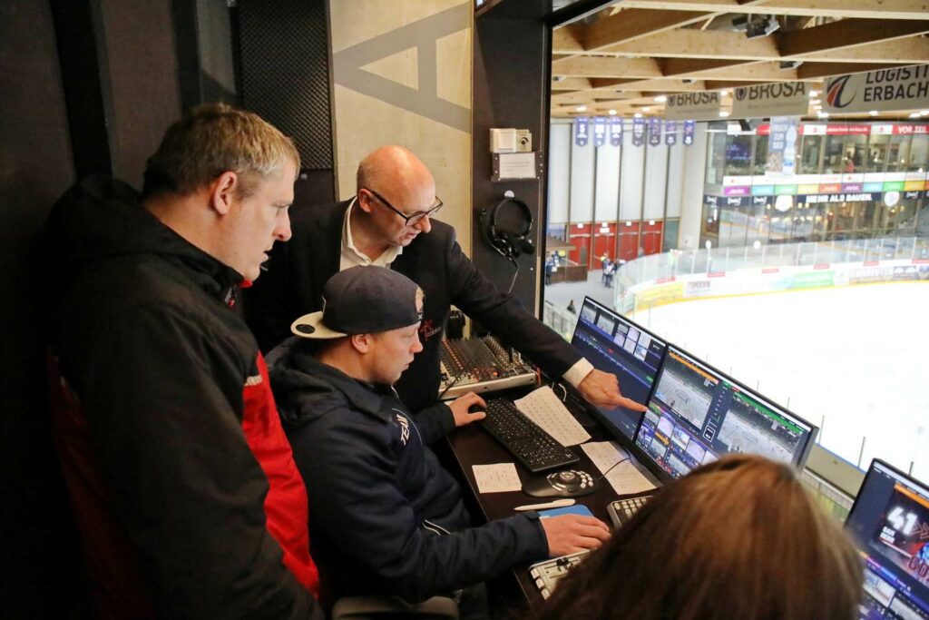 Für die Gäste-Gruppe begann der Abend schon lange vor Spielbeginn. Bei einer Pre-Game-Besprechung wurden zunächst die Aufgaben verteilt, denn es gab viel Arbeit. Beispielsweise bekamen die Towerstars-Betreuer Unterstützung beim Vorbereiten der Spielerbank. Auch am Fanstand freute man sich über die helfenden Hände. Währenddessen bekamen die Helfer für die Straf- und Zeitnehmerbank sowie die SpradeTV-Produktion einen Einblick in die Tätigkeiten des Abends. Das war freilich vor dem Hintergrund sehr interessant, da in diesen Bereichen ein normaler Zuschauer keine Einblicke hat. Selbstverständlich gab es ausreichend Gelegenheit, auch individuelle Fragen zu stellen. 30 Minuten vor Spielbeginn wurde es dann zum ersten Mal richtig spannend, als die Gruppe beim Eröffnungsinterview des Livestreams von SpradeTV zu Gast war.