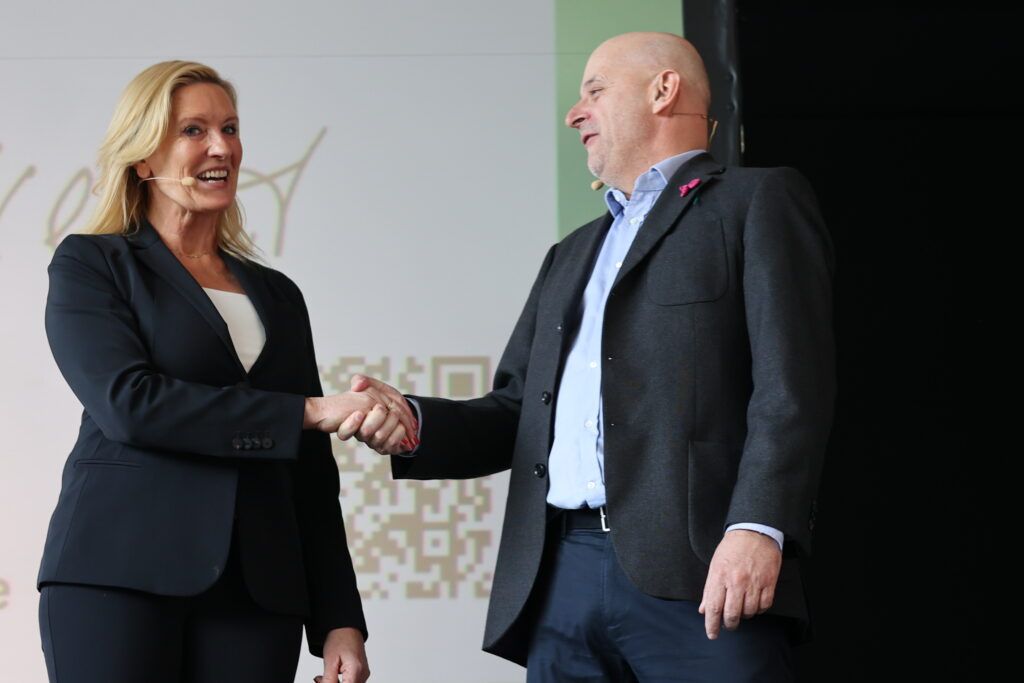 Im Unterschied zum Studio hat Claudia Kleinert in der vollbesetzten Aitracher Halle ein lebendiges Publikum. „Das habe ich sehr gerne, weil ich die Reaktionen erlebe, im Studio bin ich halt alleine“, so die Referentin zu unserem Berichterstatter. Sie spricht zu den Fachleuten der Baubranche engagiert über Klima und Nachhaltigkeit. „Ich bin nicht nur Ansagerin und lese ab“, plaudert die Wetter-Moderatorin aus dem Nähkästchen. Im Vorlauf der Sendungen spreche ein Team über „ein Thema, das die Zuschauer packt.“ Es rufen sogar Leute an und wollen eine persönliche Wettervorhersage für ihren Standort: „Wann endlich kommt Regen?“ Gerne würden solche Fragen von Landwirten gestellt.