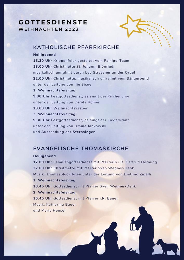 Angebote der beiden christlichen Gemeinden über Weihnachten