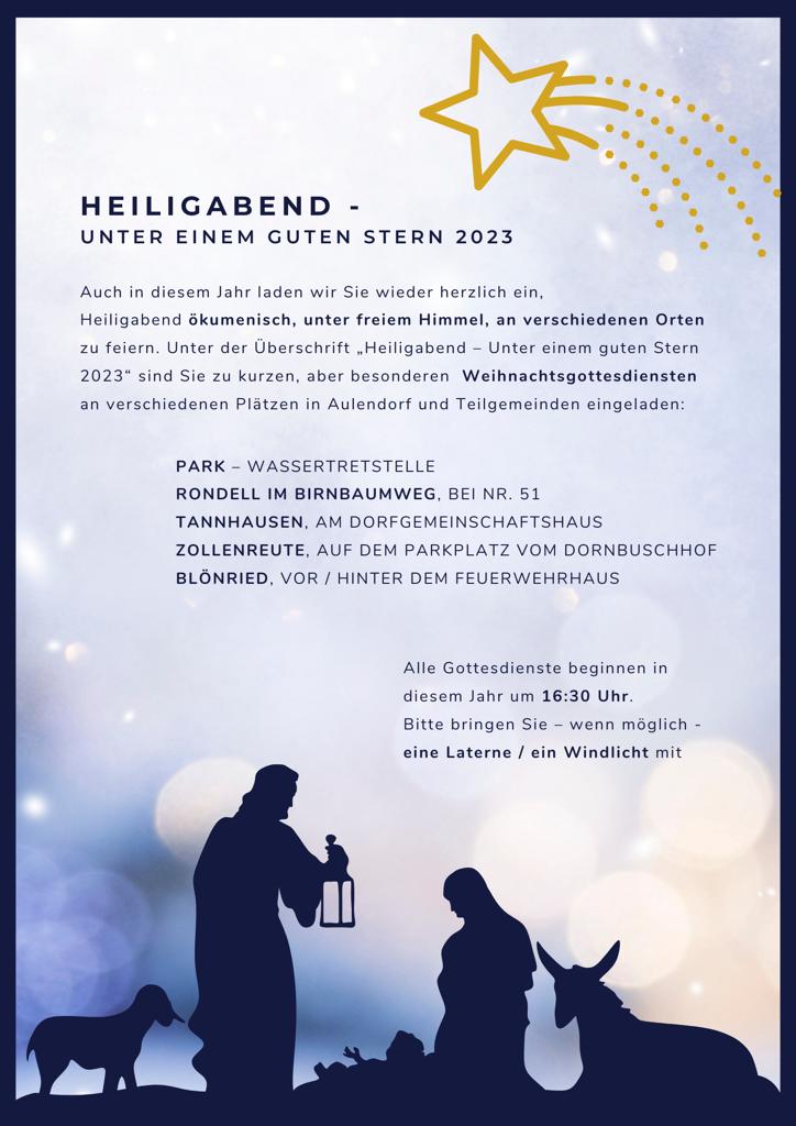 Weiter gibt es am Heiligen Abend um 16.30 Uhr verschiedene ökumenische Angebote. Siehe nachstehendes Plakat.