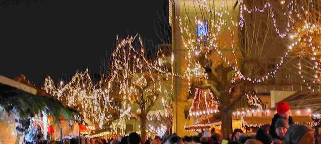 War es die wunderbar geschmückte Strandpromenade, wo sich hellerleuchtete Geschenkebuden aneinanderreihten, oder die Stände, in denen allerlei Leckereien ihre Düfte verströmten, waren es die Fahrgeschäfte für Kinder, oder war es doch das bevorstehende Konzert der singenden Matrosen aus dem Schussental? Jedenfalls zwängten sich Massen von Besuchern durch die engen Gassen des Lindauer Weihnachtsmarktes. Alle paar Meter erklangen aus irgendeiner Ecke die in der Weihnachtszeit allgegenwärtigen amerikanischen Schlager „I’m dreaming of a white Christmas“ oder“ Jingle Bells“.