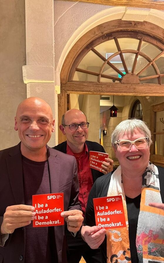„I be a Auladorfer – I be a Demokrat“: Landtagsvizepräsident Born, Kreisrat Prof. Dr. Deuer und Heike Engelhardt MdB bei der Veranstaltung in Aulendorf. Foto: SPD