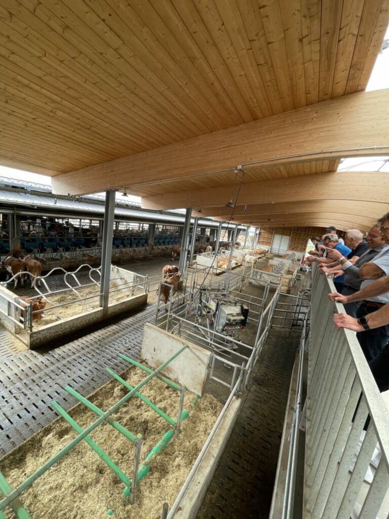 Nach der Einleitung und der Präsentation des LAZBW folgte dann die Inaugenscheinnahme der Örtlichkeiten. Dies wurde in zwei Gruppen, zum einen vom Leiter des LAZBW, Herrn Asse, und zum anderen von der Leiterin des Fachbereichs 12 (Wiederkäuergerechte Fütterung und Umweltwirkungen), Frau Dr. Elisabeth Gerster, durchgeführt. Auf diese Weise konnten die Teilnehmerinnen und Teilnehmer in weiteren Fachvorträgen direkt vor Ort Ausführungen & Einblicke in die verschiedenen Bereiche der Milchwirtschaft, Tierhaltung und Fütterung erhalten.