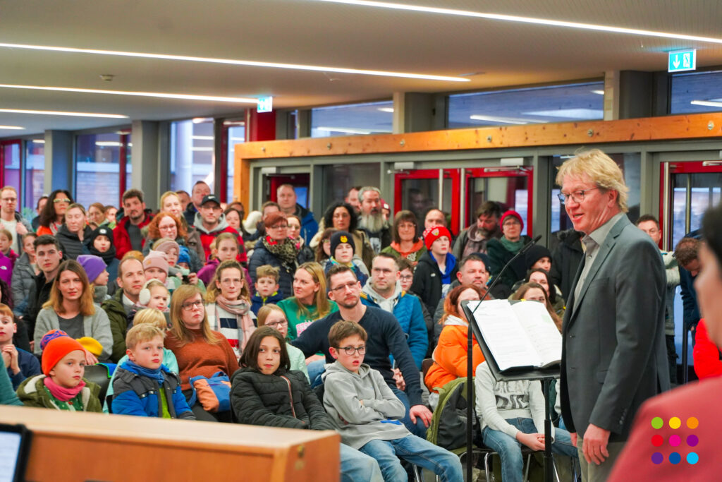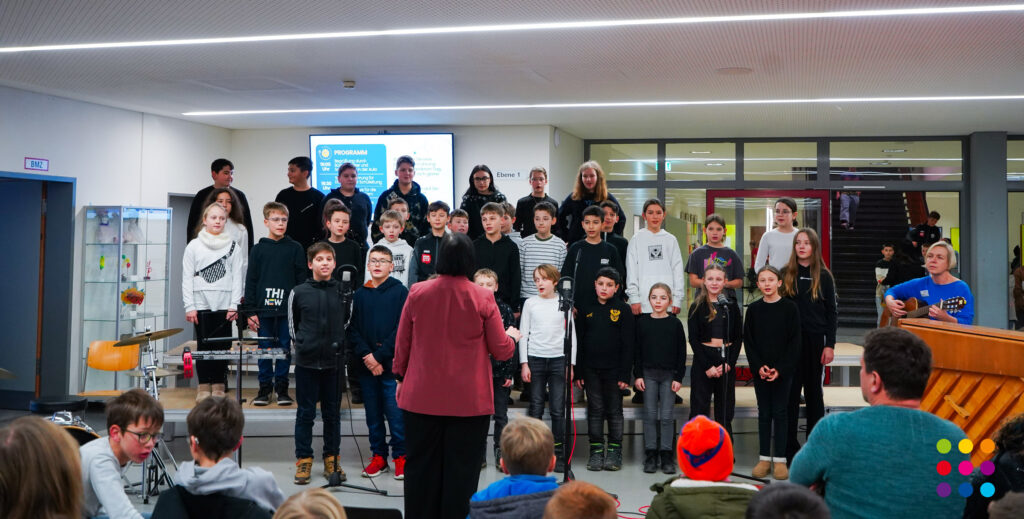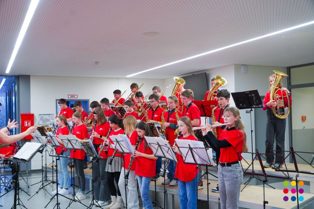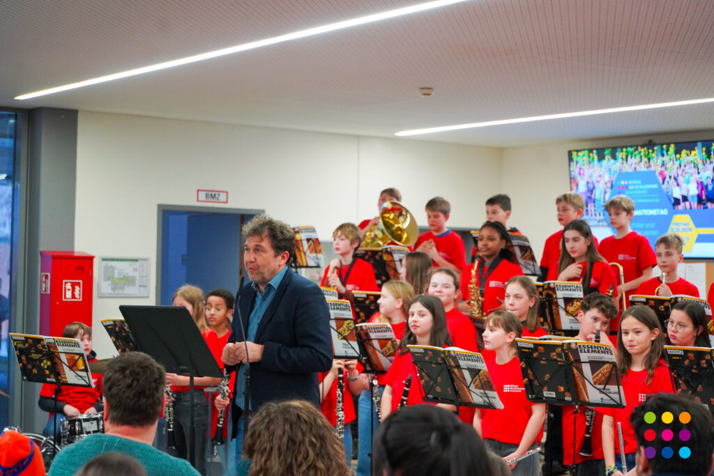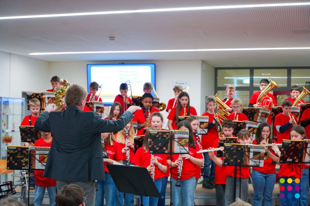 Eröffnet wurde die Veranstaltung vom Chor der 5.-Klässler unter Leitung von Martina Maucher, Ingrid Ziegler und Carolin Lutz mit drei kurzweiligen musikalischen Beiträgen. In seiner Eröffnungsansprache begrüßte Schulleiter Christof Lang die anwesenden Gäste, die beiden Elternbeiratsvorsitzenden Lubica Schmid, Michael Schweinberger und den Bürgermeister von Aulendorf, Matthias Burth, der in seiner Rede die Bedeutung der Schule als Lebensort stark betonte. Weiter ging es mit der Bläserklasse 5 + 6 unter der Leitung von Schulleiter Christof Lang und Steffen Ocker, mit mittlerweile 75 SchülerInnen. Elternbeiratsvorsitzender Michael Schweinberger betonte in seiner Rede die gute Zusammenarbeit zwischen Schülern, Eltern und Lehrern.