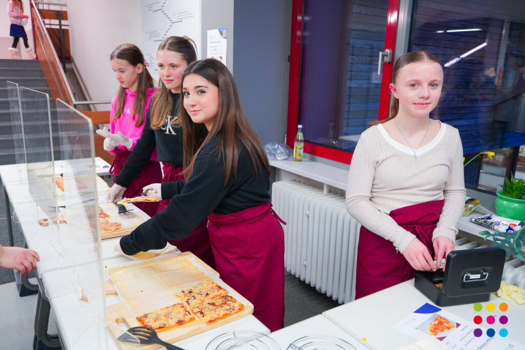 Seit diesem Schuljahr neu an der Schule ist die Verwendung der neu errichteten Turnhalle mit einer integrierter Kletterwand und die Anwendung eines „Plotters“ im Fach AES. Auch die anderen Fächer und die Schulsozialarbeit präsentierten sich in unterschiedlichsten Stationen mit zahlreichen praxisnahen und handlungsbezogenen Angeboten. Bewirtet wurde die Veranstaltung von den Klassen 7, die mit den Einnahmen ihren Schullandheim-Aufenthalt finanziell unterstützen.