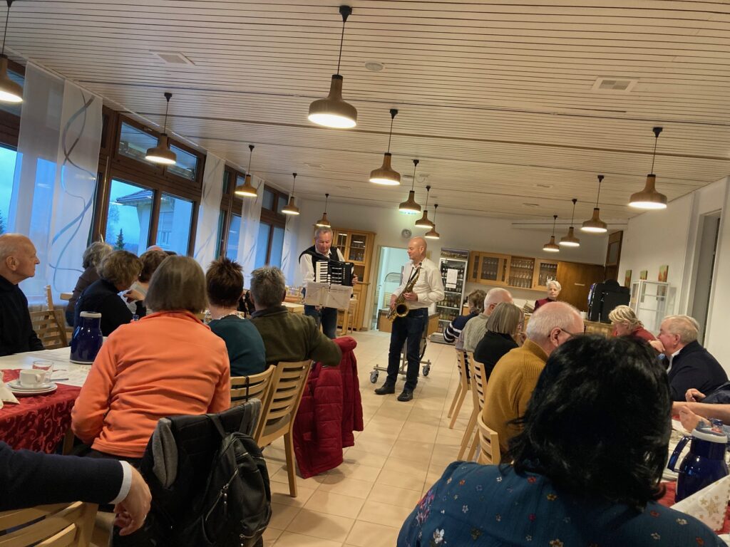 Traditionell stehen bei der Adventsfeier Kaffee und Kuchen im Mittelpunkt, die in gemütlicher Runde im Schönstattzentrum genossen werden können. Für die musikalische Begleitung sorgte ein abwechslungsreiches Programm mit besinnlichen Klängen und festlichen Liedern, das zum Mitsingen und Genießen einlud. Das beliebte Duo von Jürgen Schoch und Jürgen Schmid ließ keine Wünsche offen und dann gab es noch eine Überraschung: zum ersten Mal gab es einen Auftritt Schussentäler Schalmeien beim VdK! So ergab sich ein bunter musikalischer Reigen der besonderen Klasse.