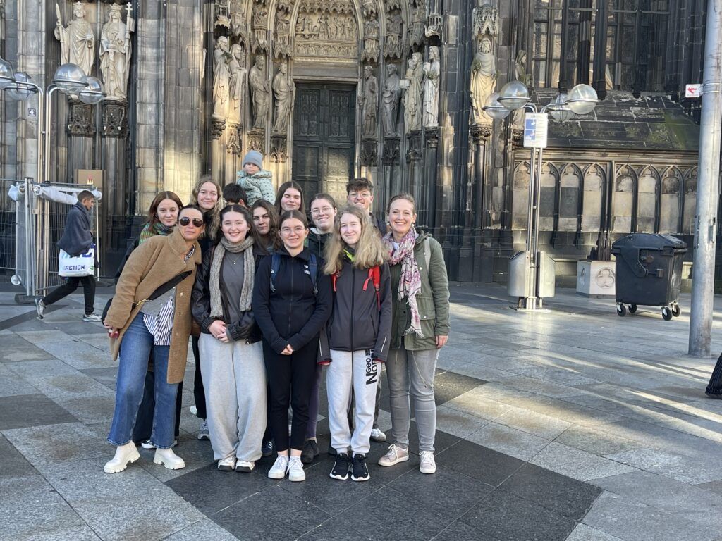 Nach der Zugfahrt nach Köln und einer kurzen Pause in der Jugendherberge ging es direkt in die Kölner Innenstadt, wo wir uns den Dom anschauten und danach eine Podcast-Stadtführung machten, die an unterschiedlichen Standorten die einzelnen Entwicklungsphasen der Stadt verdeutlichte.