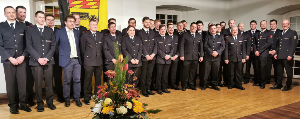 Alle Geehrten und Beförderten. Foto: FFW Aulendorf