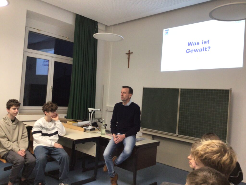 Mit seiner zugewandten Art und seiner konkreten Herangehensweise, die stets anschaulich mit Beispielen aus seinem reichen Erfahrungsschatz und somit verständlich für die Schülerinnen und Schüler war, gelang es dem Polizeibeamten, die drei Schulstunden abwechslungsreich und informativ zu gestalten. Somit haben die Siebtklässler wichtige Impulse für eine gewaltfreie Atmosphäre erhalten, die es braucht, damit das Miteinander in Schule und Gesellschaft gelingen kann.