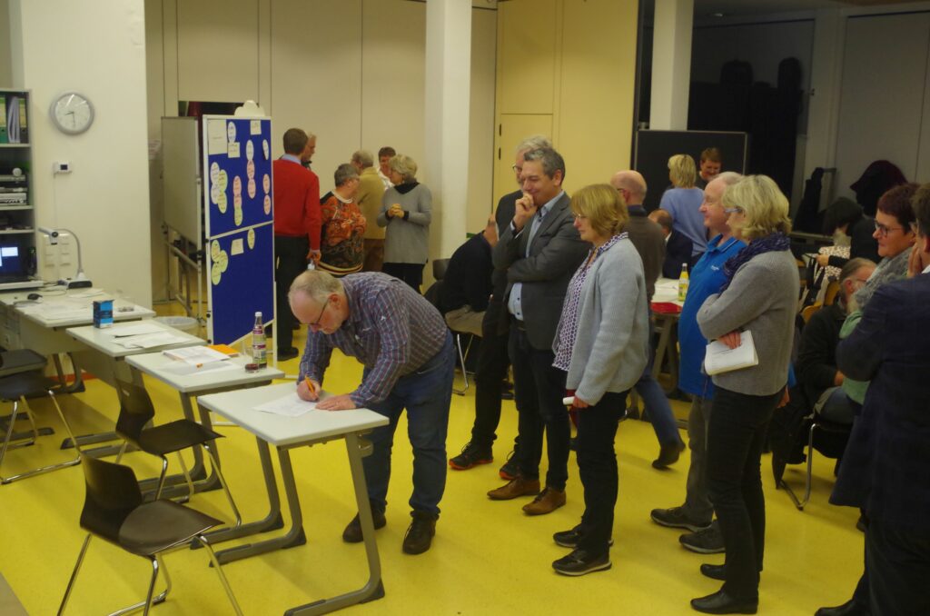 Allen voran der Bürgermeister trugen sich 38 Gründungsmitglieder in eine Liste zur Vereinsgründung ein. Der vorgeschlagenen Zahl von sechs Vorstandsmitgliedern wurde ebenso zugestimmt wie der Wahlleitung durch den Bürgermeister. Der Vorstand soll laut Satzung je zur Hälfte mit Frauen und Männern besetzt sein. So wurden zuerst die beiden vorgeschlagenen Vorsitzenden Karin Halder und Josef Bühler einstimmig per Handzeichen gewählt, danach ebenso ohne Gegenstimmen die Stellvertreter Stefanie Dölle, Dieter Schmucker, Anita Herre und Andreas Schulte. In einer weiteren Abstimmung wurden Schulte zum Kassenwart und Herre zur Schriftführerin bestimmt. Die Wünsche und Anregungen für den gemeinnützigen Verein sind just vor Weihnachten viele; von Leihoma und -Opa, Reparatur-Treff, Fahrdienste zum Arzt bis zu einem Mehrgenerationenhaus und bezahlbaren Wohnraum.