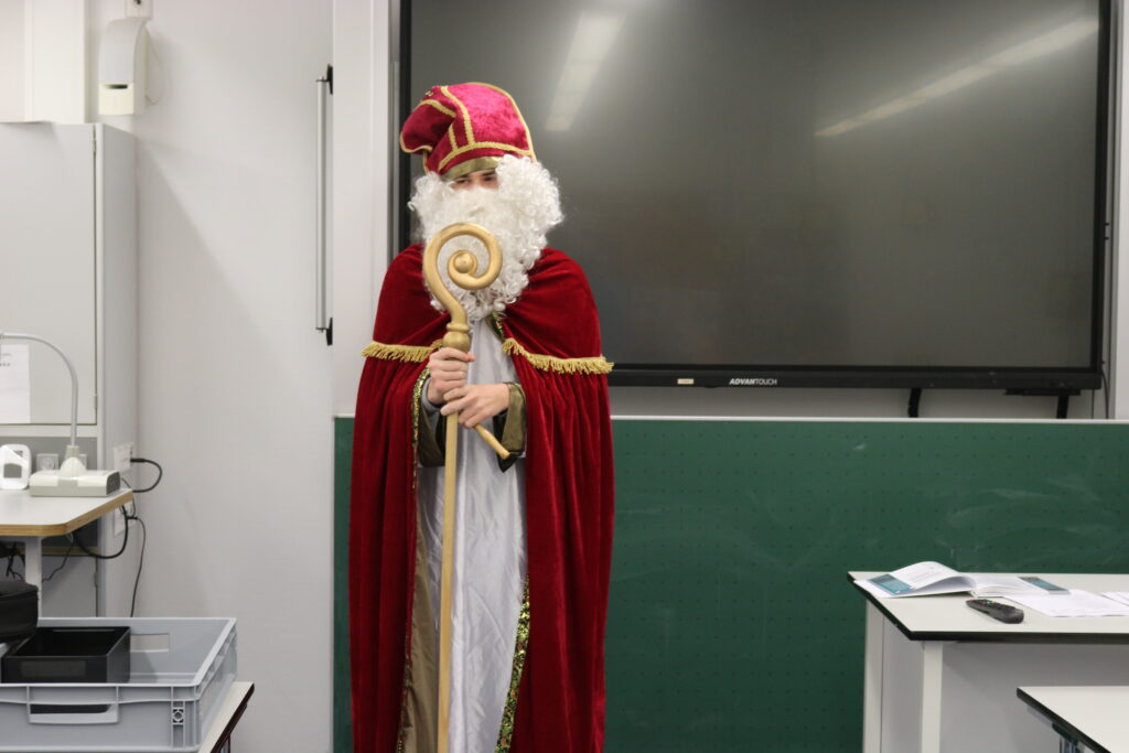 Am Jahrtag des Heiligen Nikolaus selbst sorgte die SMV des Studienkollegs dafür, dass Nikolaus „persönlich“ in allen Klassen und Kursen vorbeischaute, so dass Groß und Klein mit Klosemännern versorgt werden konnten, wenn ein passendes Gedicht oder ein schönes Lied zum Besten gegeben wurde.