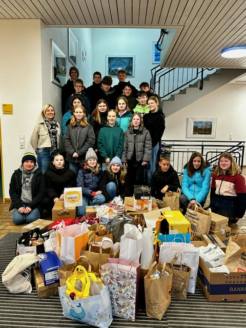 Im Rahmen des Religionsunterrichtes sammelten die Schülerinnen und Schüler der Klassen 5 bis 7 mit ihrer Lehrerin Ulrike Schmid Lebensmittel für die Aktion des HGV. Sie unterstützten damit bedürftige Menschen und Familien zur Weihnachtszeit mit liebevoll gestalteten Weihnachtskarten und vollen Taschen.