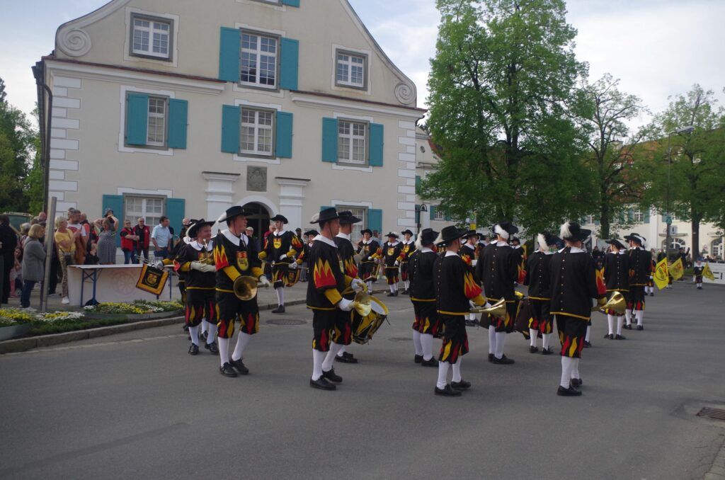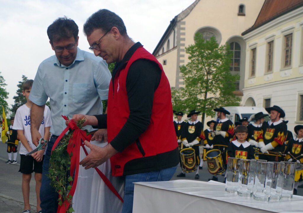 Bei dem guten Wetter hatten sich am Schlossplatz hunderte von Zuschauern versammelt, um dem Schauspiel beizuwohnen. Viele starke Männer hievten den 22 Meter hohen und frisch geschälten Lindenbaum in Etappen in die Höhe, angefeuert von den Trommelschlägen und Fanfaren. Danach wurde weiter gefeiert, wobei man nicht beim Wasser blieb. Auch der Bürgermeister wechselte später zum Produkt der heimischen Brauerei.