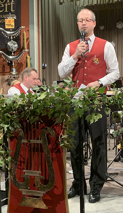 Matthias Dorner, Vorstand der Stadtkapelle, bei der Begrüßung.