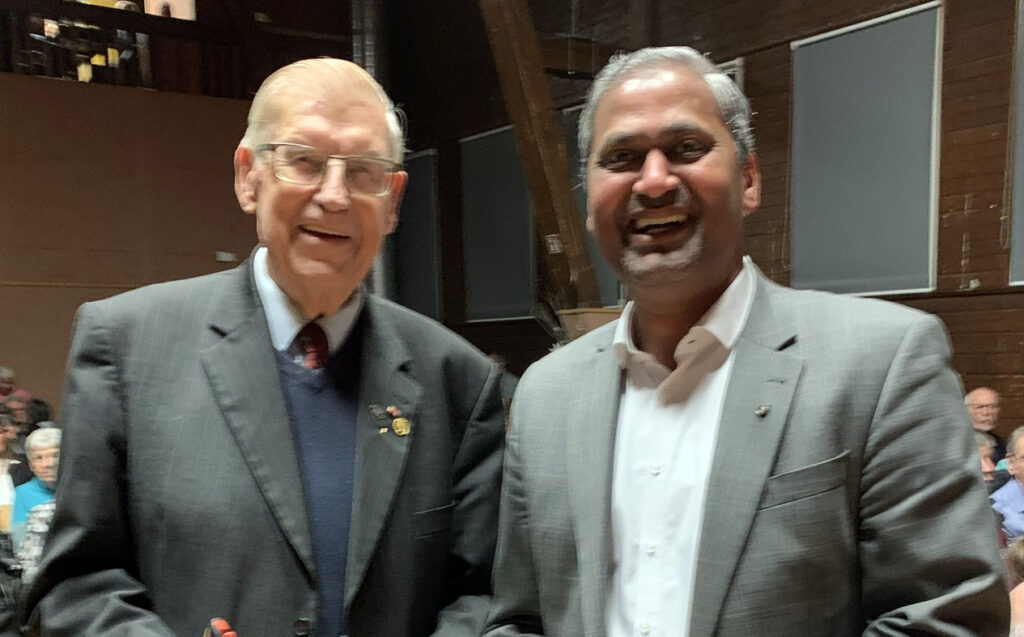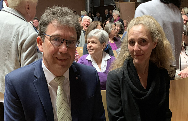 Tosender und lang anhaltender Applaus war der hochverdiente Lohn für das gelungene Neujahrskonzert. Vorsitzender Dorner nahm das Mikrofon und dankte allen, die zum Gelingen des Konzerts beigetragen haben, insbesondere dem Dirigenten, den Solisten, den Aushilfen, dem Moderator und mit Blumengebinde Valeria Kizka.