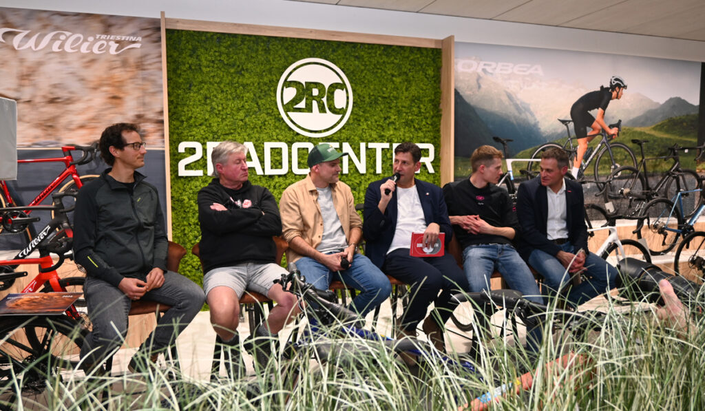 Mehr als 300 Gäste konnten Rolf Weggenmann und sein Team zur Eröffnungsparty des neu gestalteten 2RADCENTERS begrüßen. Natürlich waren auch Promis aus der Fahrradszene zu Gast. Zum Talk trafen sich Daniel Steinhauser, Bad Waldsees bekanntester Ultra-Cycler und Inhaber eines Guinness-Weltrekordes, Roland Roth, Wetterfrosch aus Bad Schussenried, Daniel Unger, Triathlon-Weltmeister, Georg Steinhauser, Profi-Rennfahrer bei EF-Education-EasyPost, Tobias Steinhauser, erfolgreicher Rennfahrer und Mannschaftskollege von Jan Ullrich. Moderiert wurde der Talk von Marco Worms, bekannt von Donau 3 FM.