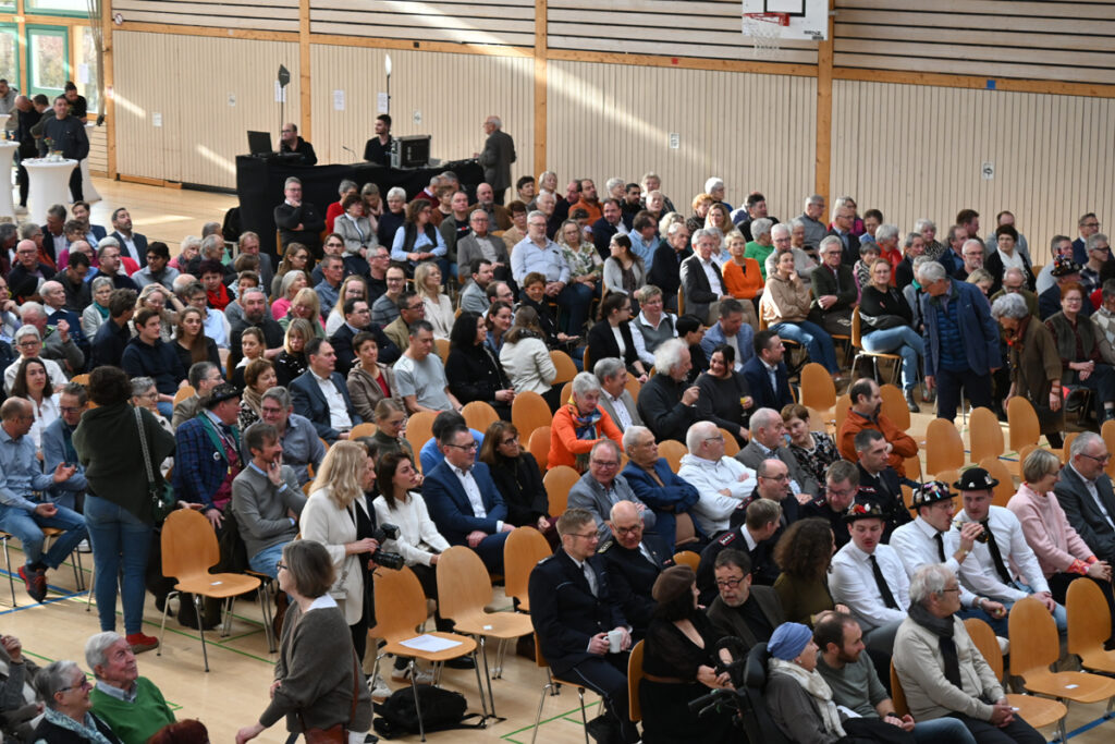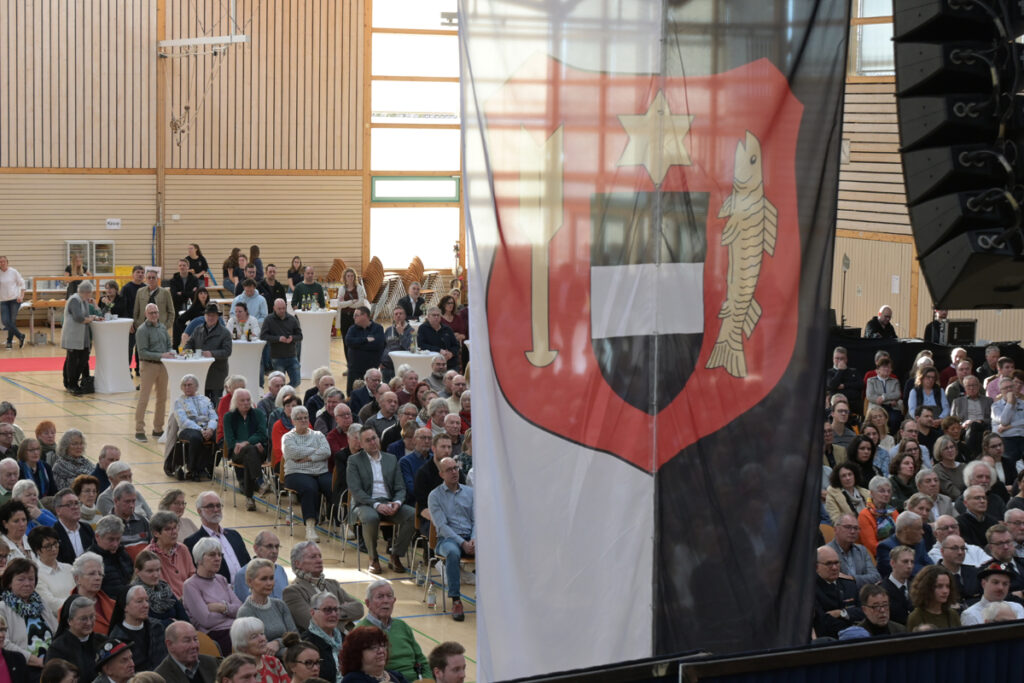 Dreimal ertönte der Gong. Dann hatten alle ihren Platz gefunden. Vorne die VIPs aus Stadt-, Ortschafts- und Kreistag. Ebenso wie Alt-Bürgermeister Prof. Rudolf Forcher mit Frau, Ex-Kämmerer Alfons Fiegel mit Frau und Landrat Harald Sievers.