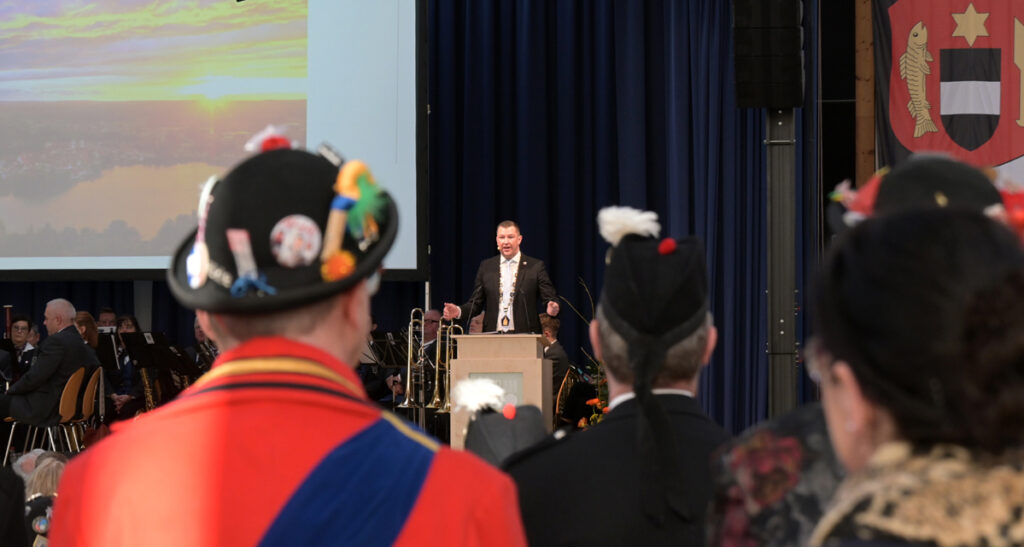 „Ich bin gerne Ihr Oberbürgermeister“, rief Matthias Henne den Anwesenden nach der Begrüßung zu. Und so am Rednerpult stehend, mit der Amtskette um den Hals, strahlte Matthias Henne das personifizierte Gerne-Sein und Gerne-Tun authentisch in den Saal.