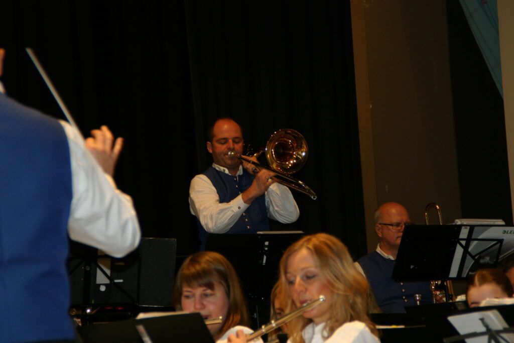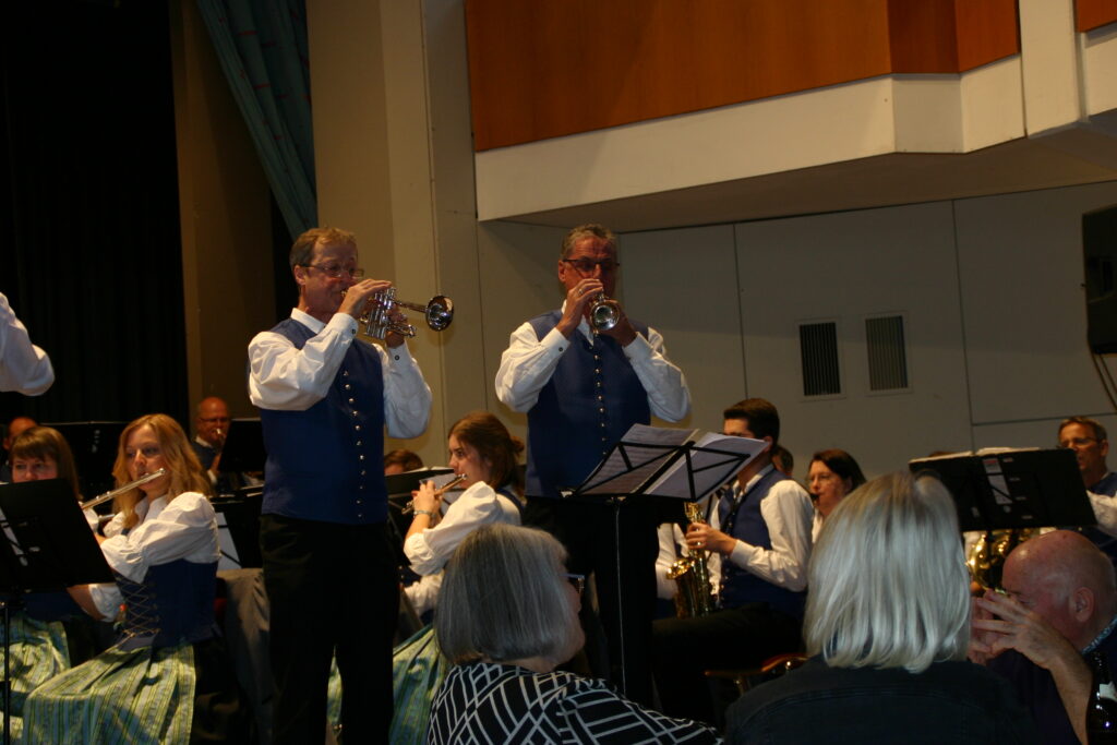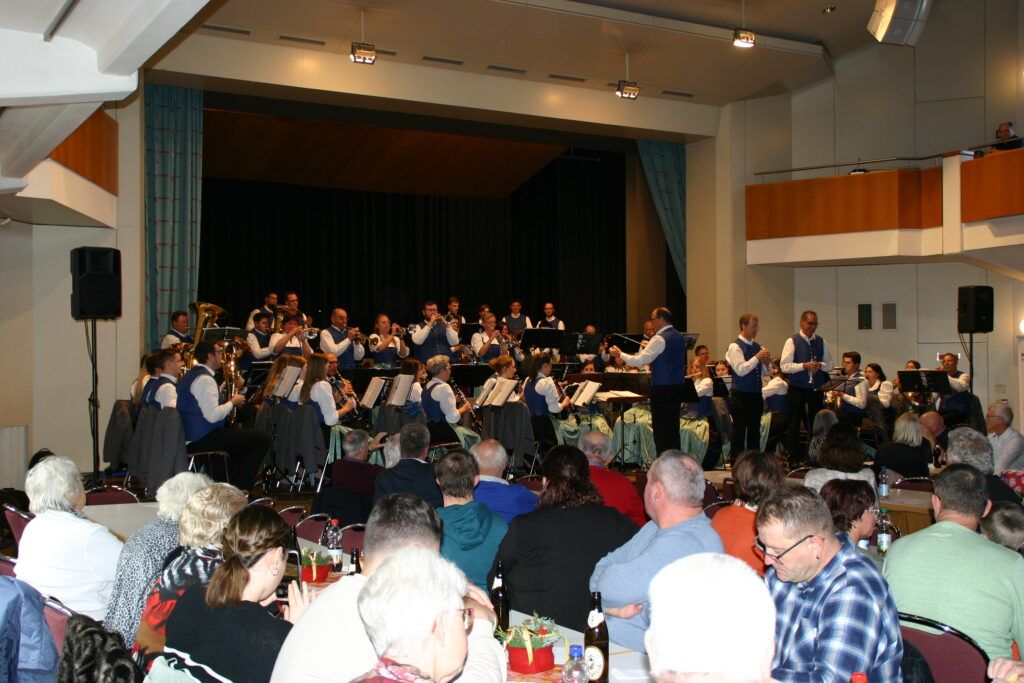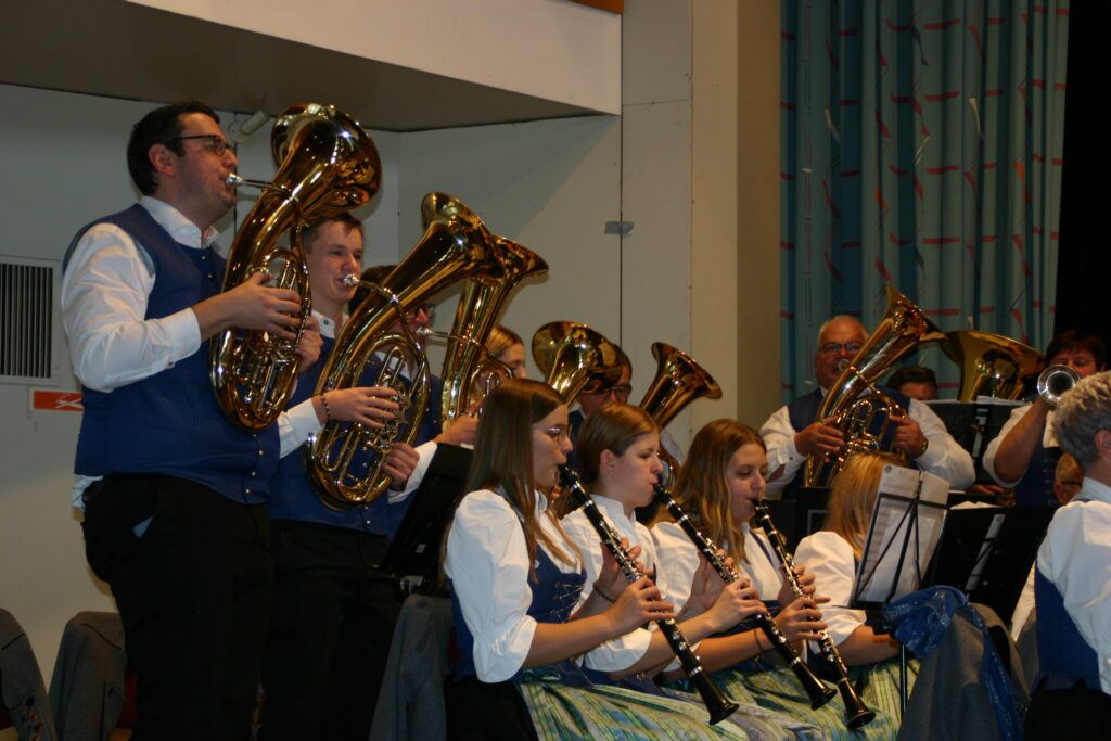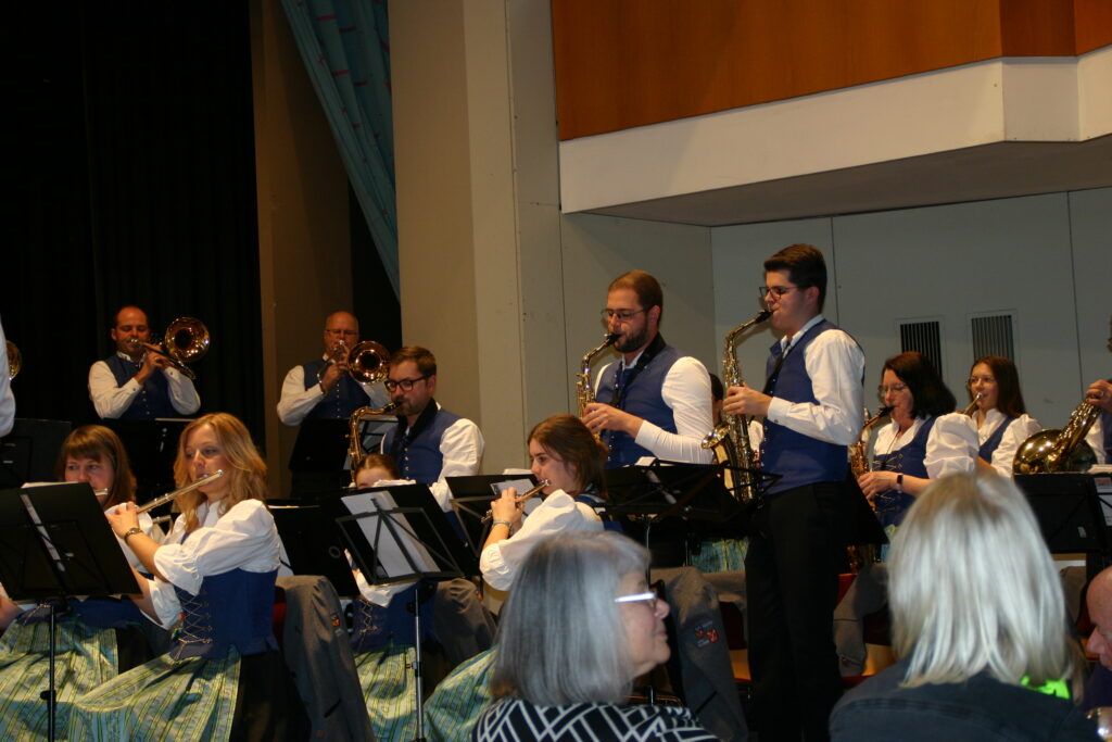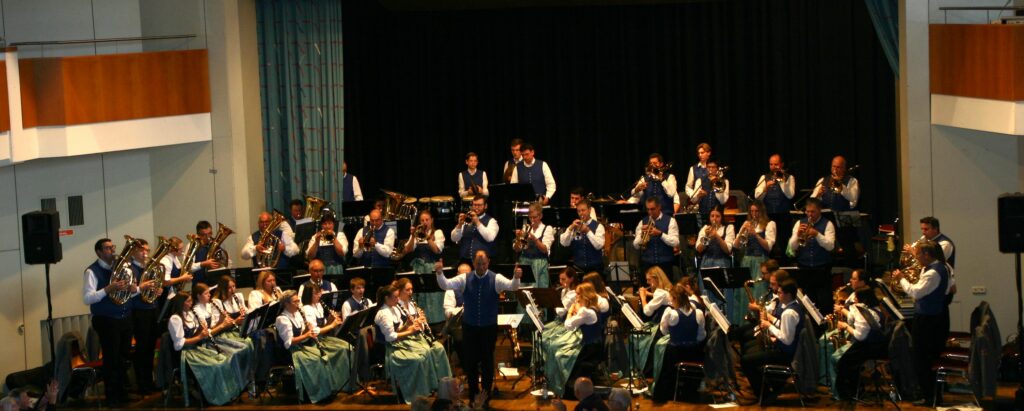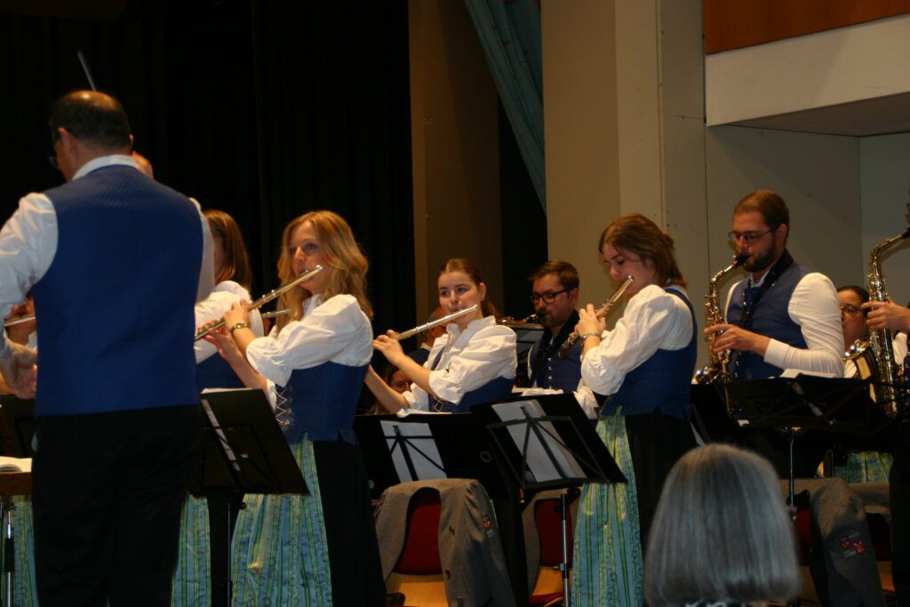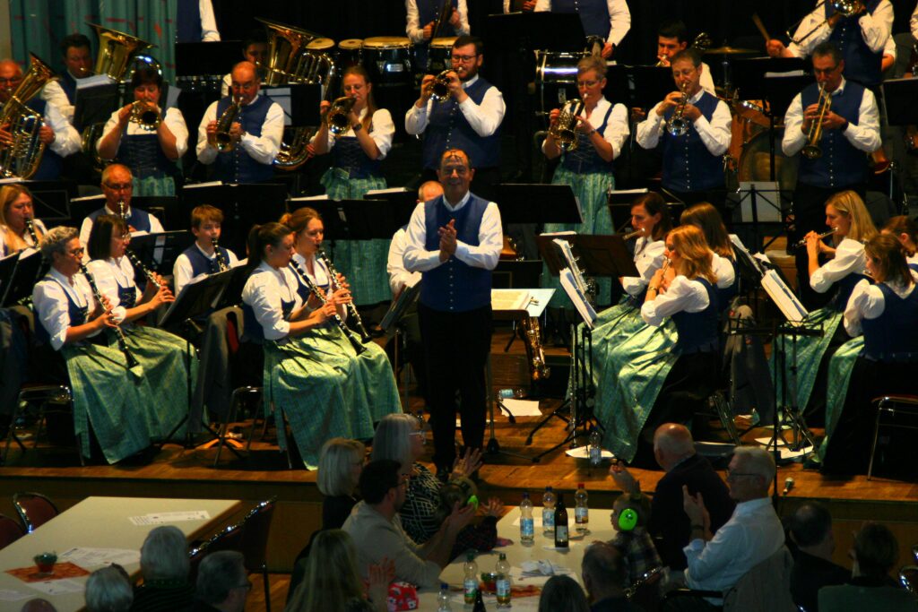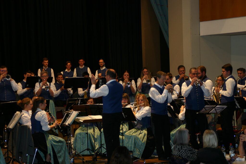 Dirigent Erich Steiner und sein sechzigköpfiges Blasorchester hatten ein breitgefächertes und hochkarätiges Programm einstudiert, bei dem für alle Vorlieben der Zuhörerschaft etwas dabei war. Zu den zahlreichen Besuchern zählten unter anderem Bürgermeisterin Monika Ludy sowie Ehrenvorstand Rudi Heilig.