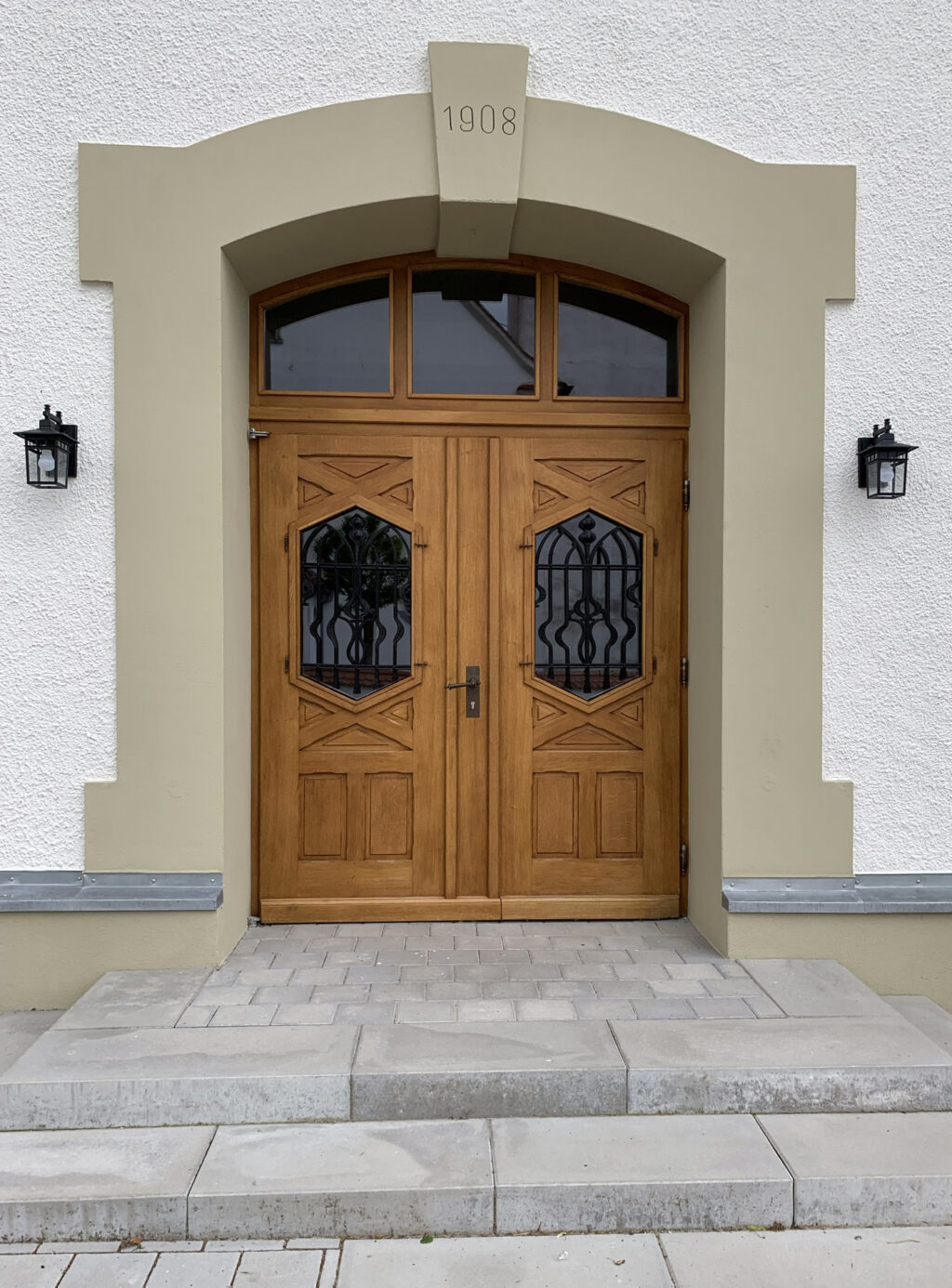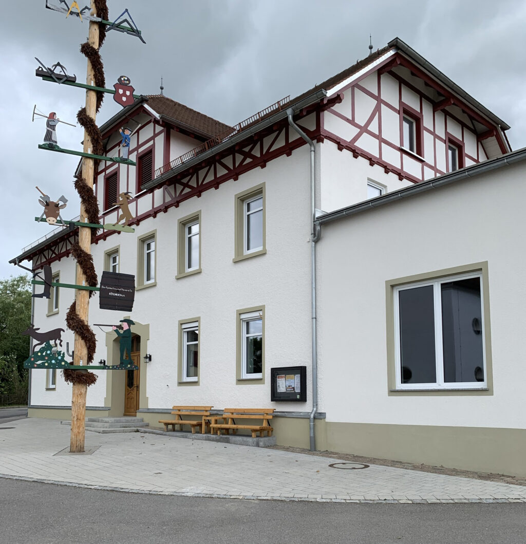 Bei einer persönlichen Führung durch Walter Rogg vom Bauerntheater, früher selbst Schüler der alten Dorfschule, durfte der Verfasser erfahren, wie liebevoll und zweckmäßig die Räumlichkeiten der eingangs erwähnten Vereine gestaltet wurden. Alle haben eine Teeküche mit Spüle, Besprechungs- bzw. Proberäume. Das Bauerntheater kann künftig einen Materialaufzug aus dem Fundus direkt zur Bühne nutzen und hat einen schmucken Proberaum im Kellergewölbe. Sogar eine Duschmöglichkeit für die Vereine durfte nicht fehlen! Dass der Proberaum des Musikvereins gar schallgedämmt ist, ist ansonsten sicher nicht Standard. Auch der neu gestaltete Innenhof mit alter Linde und Kinderspielplatz gehört zur wohldurchdachten Umplanung der alten Schule.