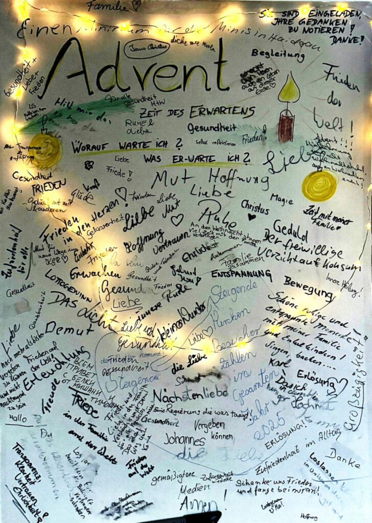 All die Besucherinnen und Besucher, ob jung oder alt, erfreuen sich derzeit am prachtvoll geschmückten Inneren der Kapelle und an den mit Kugeln geschmückten Bäumchen vor der Kapelle und auch entlang des Stationenweges, der von Haisterkirch heraufführt.