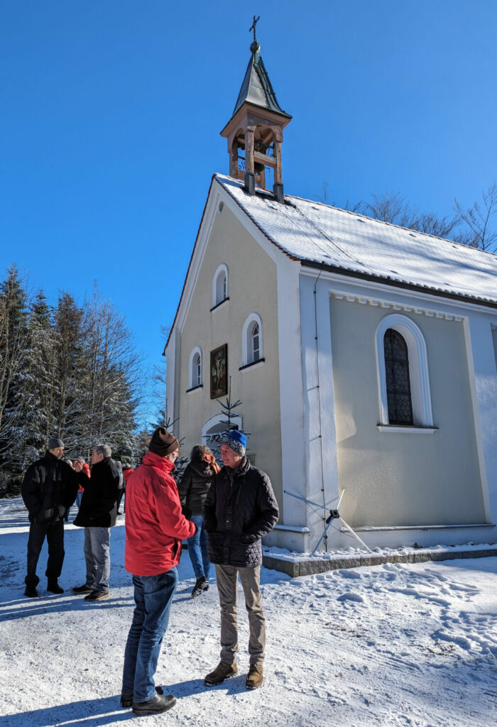 An den sonnigen Wintertagen kommen auch viele Spaziergänger vorbei, genießen die wunderschöne Winterlandschaft hier oben und statten der Kapelle einen Besuch ab.