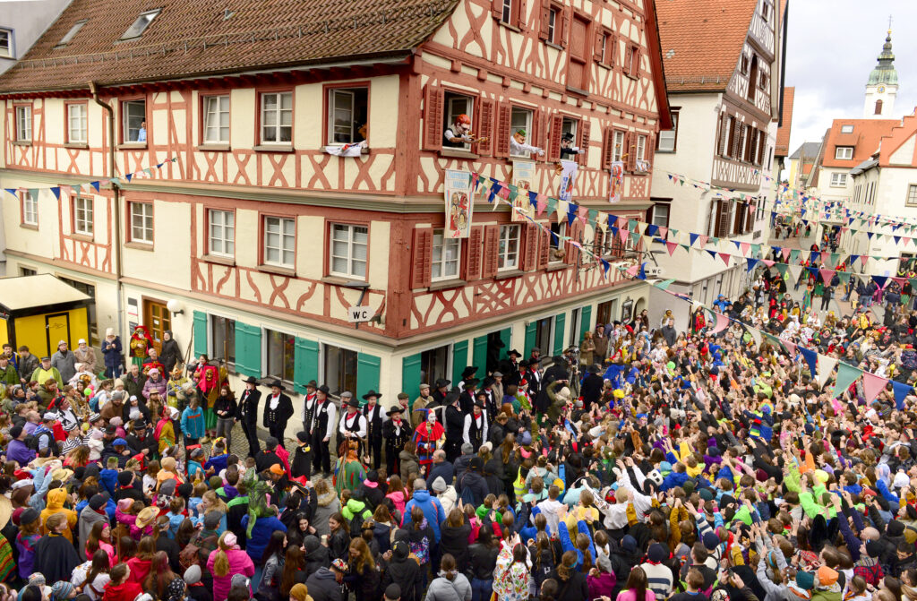 Der „Hirsch“, Traditionslokal in bester Lage, soll in diesem Sommer wieder seine Pforten öffnen. Unser Foto von einer Fasnet am „Hirsch“ ist undatiert. Gemacht hat es Brigitte Göppel, Pressesprecherin der Stadt.