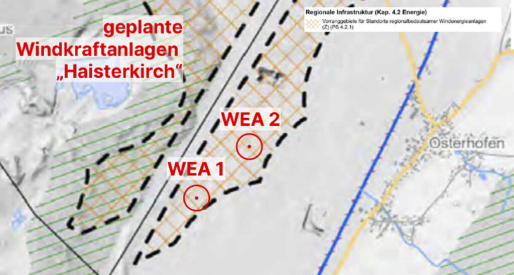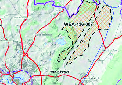 Das laut Regionalverband vorgesehene Vorranggebiet für Windkraft bei Osterhofen (WEA 436-007). Karte: RVBO