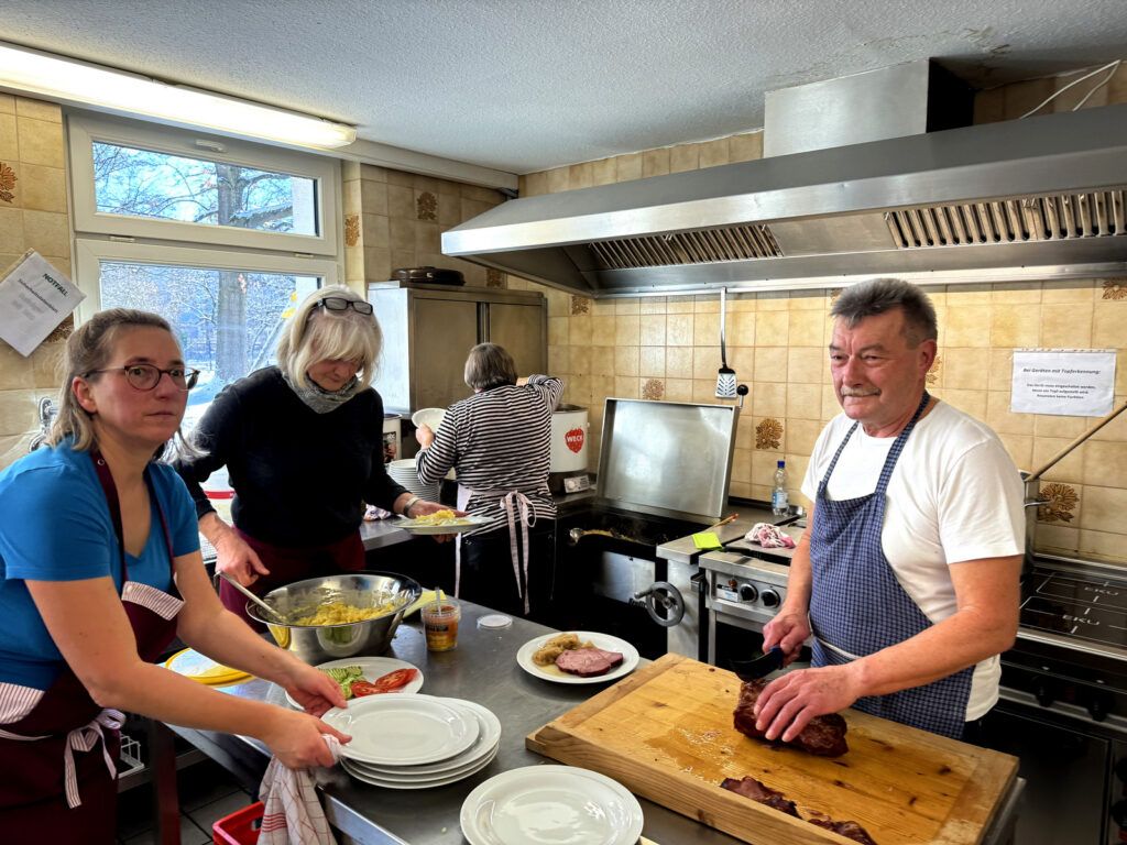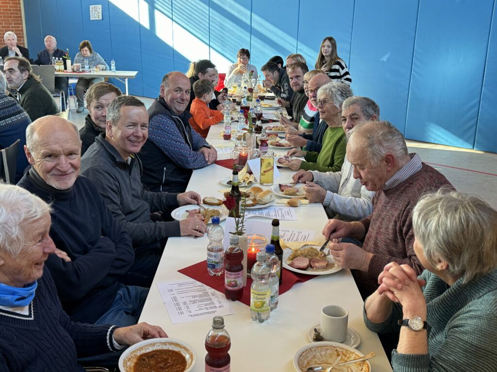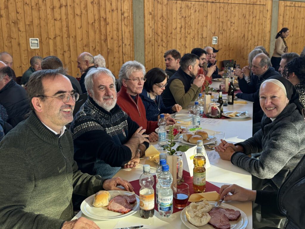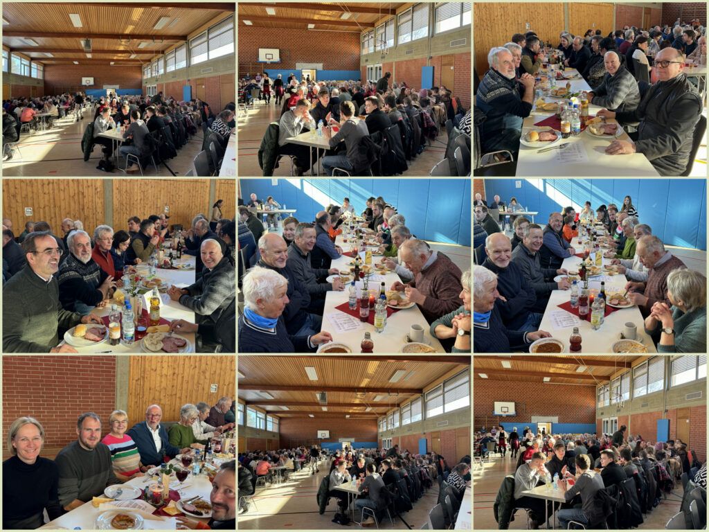 Großes Lob gab es auch für das Engagement von Mitgliedern des Kirchenchors, des Seniorenteams, des Kirchengemeinderats und freiwilliger Helferinnen und Helfer, die Dienste in der Gemeindehalle verrichteten, damit sich Wallfahrtsteilnehmer mit Speisen und Getränken sowie mit Kaffee und Kuchen stärken konnten. Kirchenchormitglieder um den Vorsitzenden Herbert Eisele durften stolz auf ihr 30-jähriges Engagement als Serviceteam sein. Um die Mittagszeit war die Halle voll belegt. Die regionalen, schmackhaften Essensangebote waren von der Metzgerei Frank (Reute) geliefert worden.