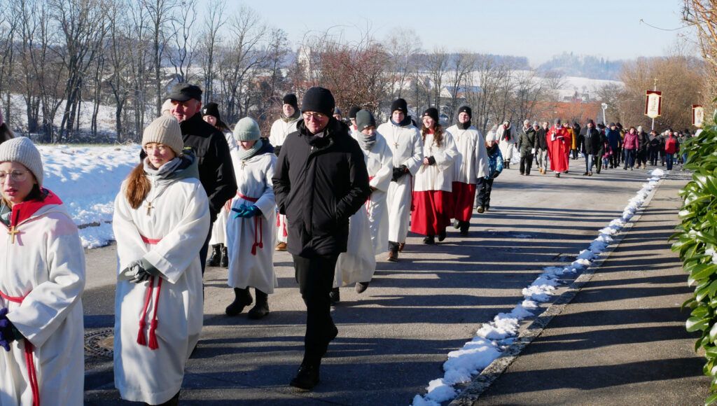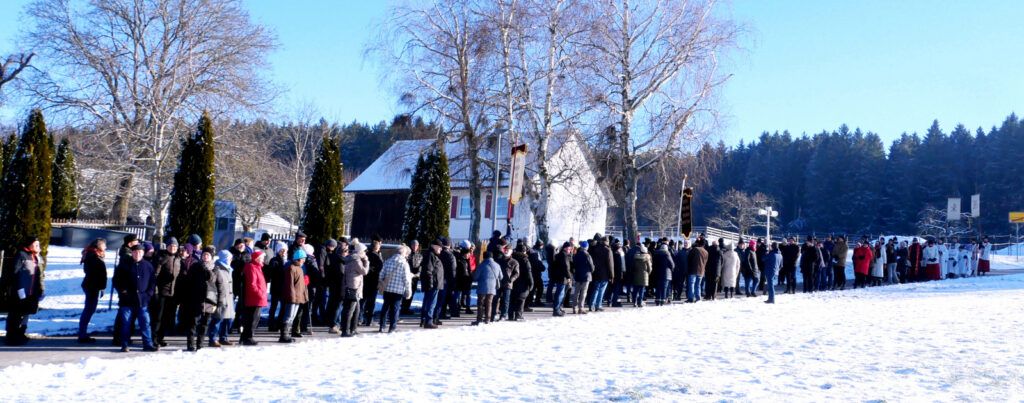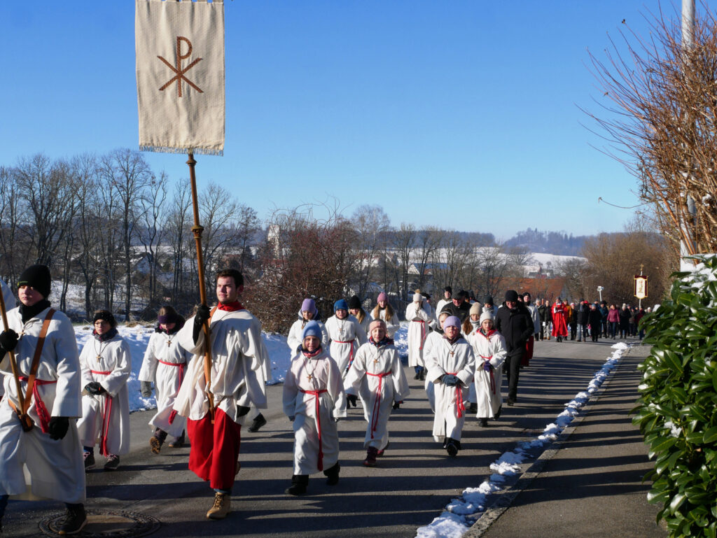 Haisterkirch – Am Sebastianstag (20. Januar) hatten sich Hunderte von Menschen aufgemacht, um dem Festgottesdienst in der Haisterkircher Pfarrkirche und der anschließenden Prozession hinauf nach St. Sebastian beizuwohnen. Etliche Gruppen – kleine und große – aus dem südlichen Kreis Biberach, dem Schussental, vor allem aus den Seelsorgeeinheiten Bad Waldsee, Bad Wurzach und Oberes Achtal pilgerten schon Tage zuvor hinauf zur Kapelle, um dort zu beten und um den Beistand des Heiligen bei Gott zu erbitten.
