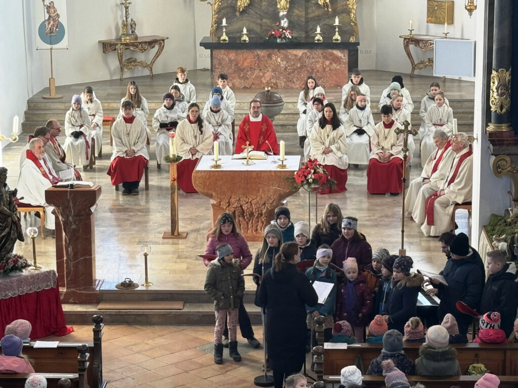 Die feierliche musikalische Gestaltung hatten Johannes Tress (Keyboard) und Verena Westhäußer übernommen. Letztere pendelte zwischen der Orgel und dem Altarraum, denn dort leitete sie den Kinderchor der Seelsorgeeinheit. Mit erfrischendem Kindergesang wurde so der Gottesdienst bereichert.