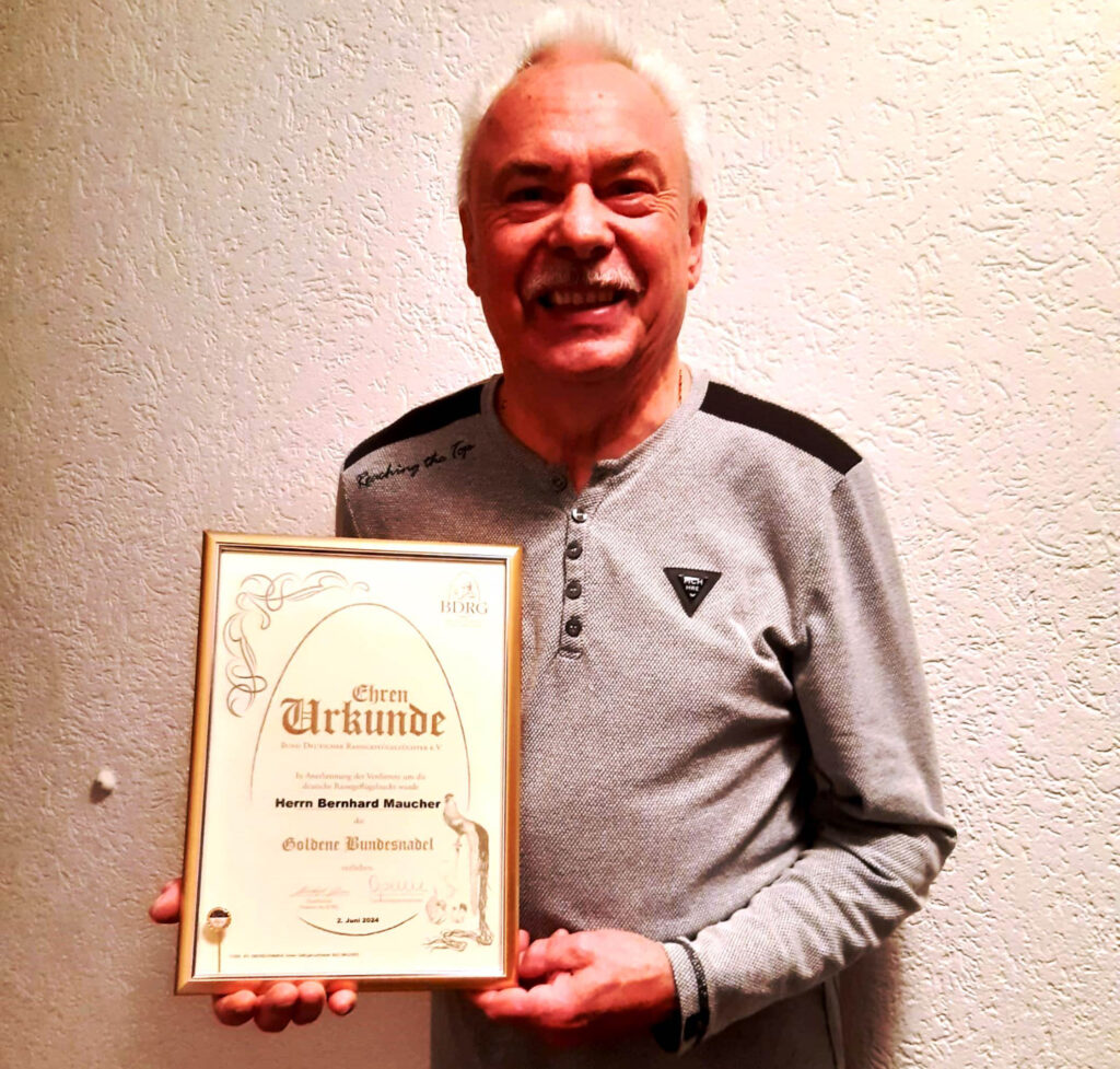 Bad Waldsee – Im Rahmen der Versammlung des Kreisverbands Oberschwaben der Rassegeflügelzüchter von Württemberg und Hohenzollern am 21. September in Bergatreute wurde Bernhard Maucher vom Geflügel- und Vogelzuchtverein Bad Waldsee die Goldene Bundesehrennadel verliehen.