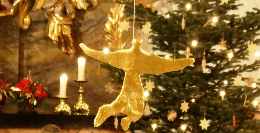 Zelebriert wurde die Eucharistiefeier von Pfarrer Stefan Werner, der sich über den erneut riesigen Zuspruch hier freuen durfte. Gläubige aus der gesamten Seelsorgeeinheit waren nach Haisterkirch gekommen. In seiner Predigt erinnerte Pfarrer Werner an die Rolle der Engel in der Heilsgeschichte. Symbolhaft deutete ein über dem Altarraum angebrachter goldener Engel darauf hin, dass durch die Geburt Jesu Verheißungen für die Menschheit wahr geworden sind, die auf Glauben, Zuversicht, Vertrauen und Liebe beruhen.