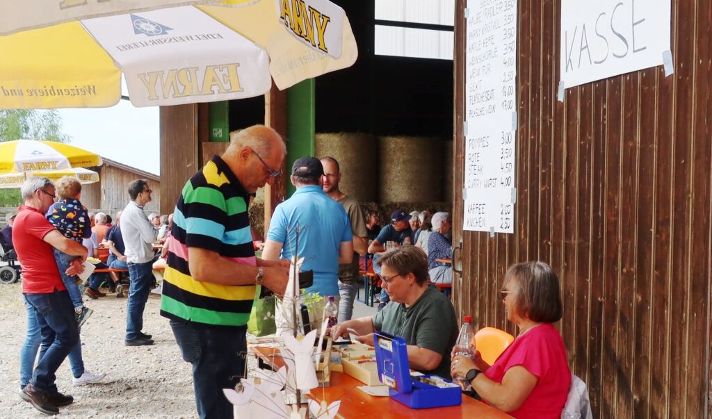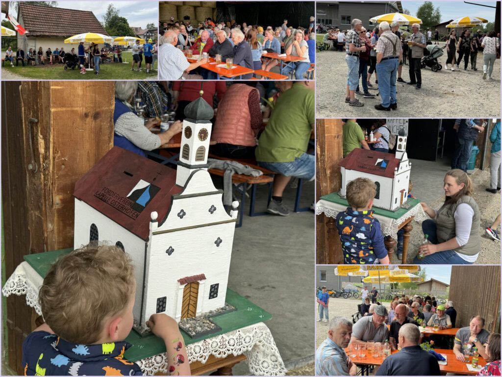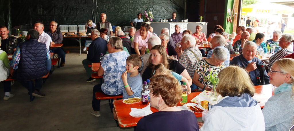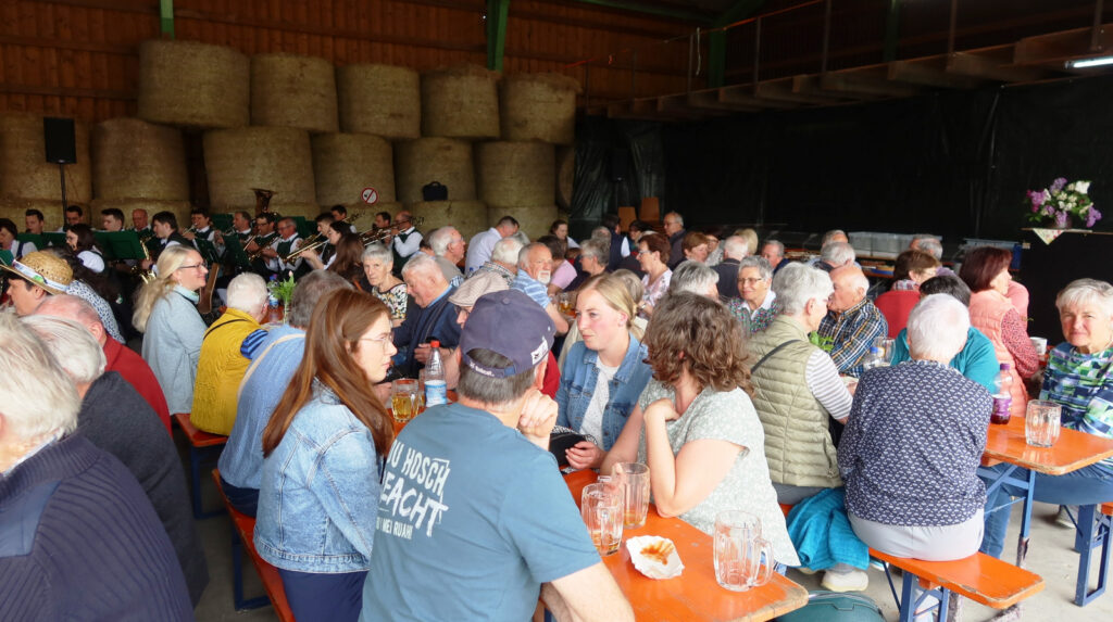 Die Maschinenhalle und der Vorplatz auf dem Hof von Josef und Gertrud Ruther war stets voll belegt. Der Familie Ruther wurde ganz besonders gedankt, weil es das Ehepaar mit viel Vor-und Nacharbeit ermöglicht hatte, dass das Fest in der Nähe der Kapelle zum zweiten Mal auf ihrem Gelände abgehalten werden konnte.