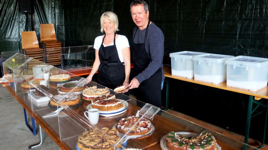 Alle machten dies selbstverständlich ehrenamtlich, um auf diese Weise den Spendenbeitrag für die Sanierungskosten der Kapelle zu erhöhen. Getränke aller Art, Grillgut mit Steaks und Bratwürsten, Kaffee und die vielen gespendeten, leckeren Torten und Kuchen fanden reißenden Absatz.